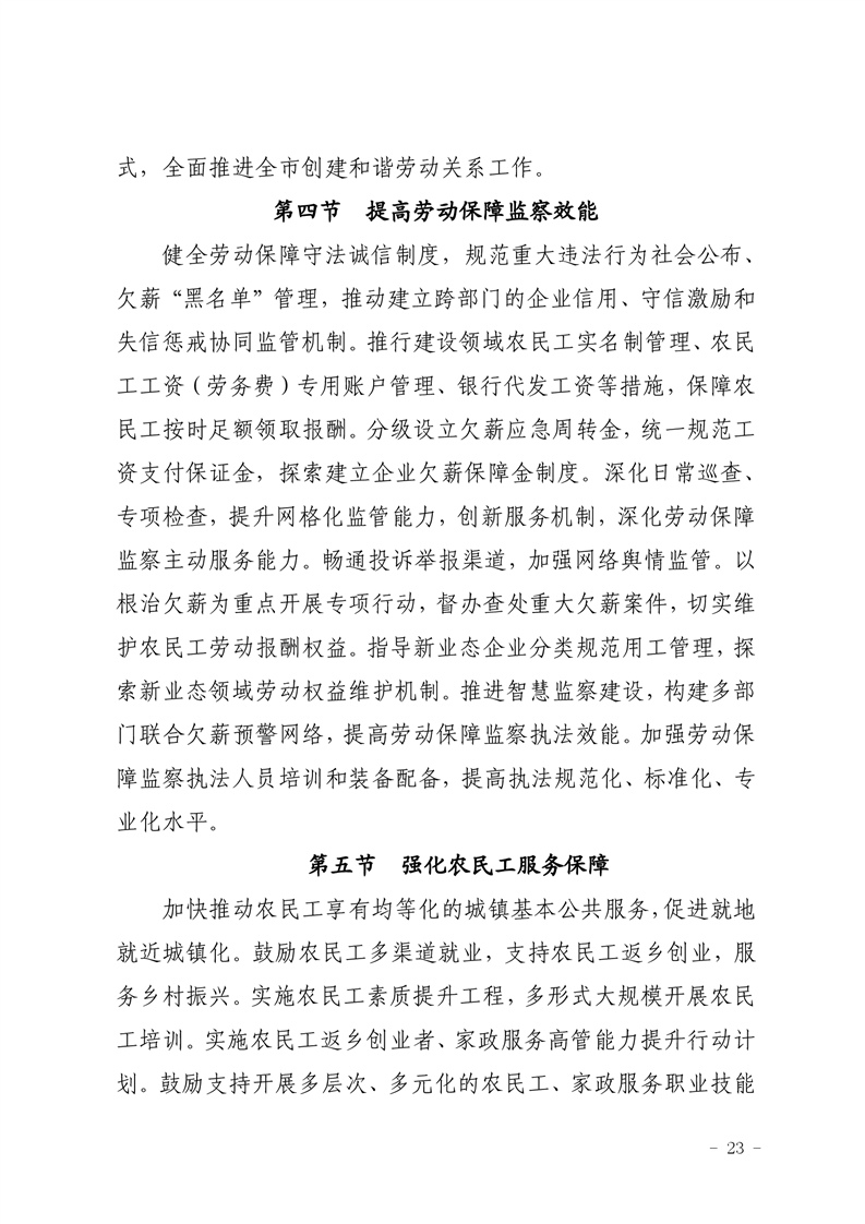 五是劳动关系更和谐更稳定。劳动关系治理能力明显提高,劳动关系协调机制进一步完善,劳动关系矛盾预防、化解积极有效,工程建设领域欠薪形势明显好转,拖欠农民工工资问题得到有效解决。