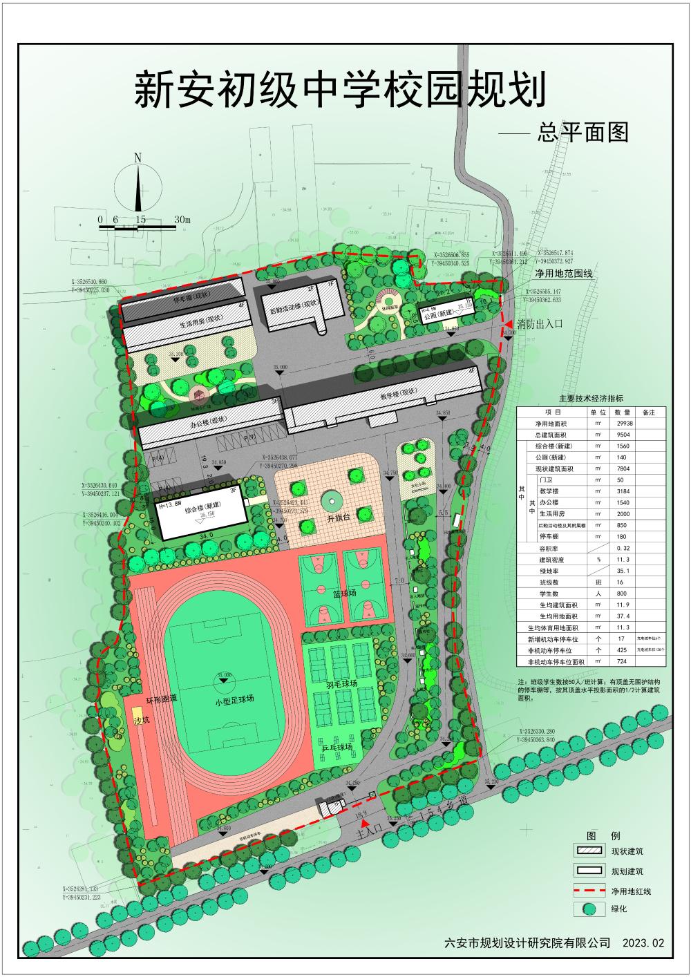 由裕安区教体局建设的新安初级中学新建项目,位于新安初级中学校内。该项目由六安市规划设计研究院有限公司设计,新建综合楼、公厕共1700平方米。