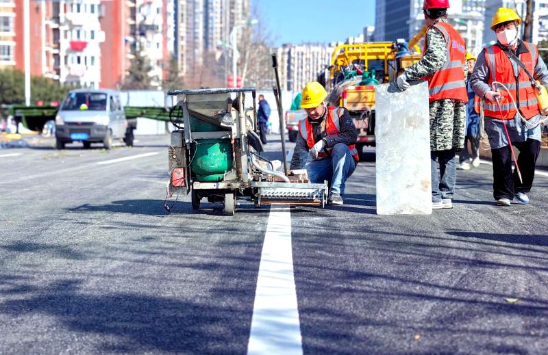 2月27日,随着长安路南延工程长安南路(金安路至七里路段)标线施工完成,我市中心城区重点工程项目长安路南延工程长安南路(金安路至七里路段)已全面进入收尾阶段,目前正在进行人行道、侧分带、交通设施、绿化及附属工程施工,预计于3月1日上午放行通车,较计划工期提前21天。