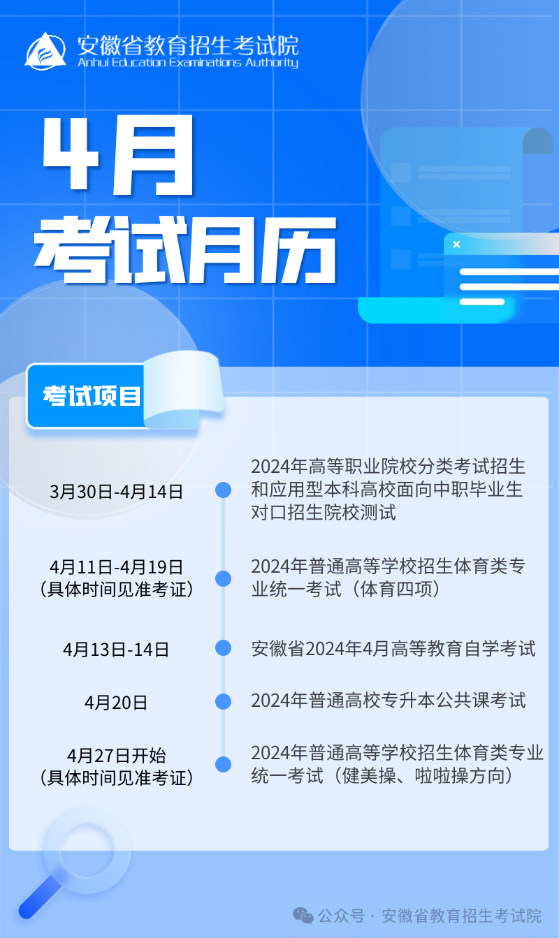 安徽省2024年4月教育招生考试月历