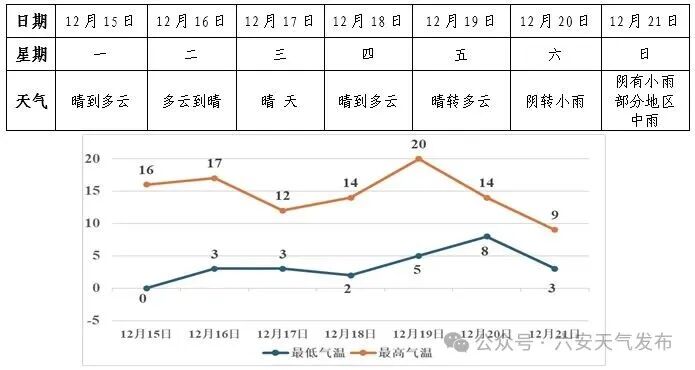 19日前我市以晴到多云天气为主;受冷空气影响,周末有一次降水过程,部分地区中雨,山区有雨夹雪或雪,同时偏北风力逐渐增至3-4级,阵风7级。今明两天最低气温0~3℃,最高气温15~17℃;后天受弱冷空气影响,气温有所下降,最高气温12℃;18-19日气温短暂回升,最高气温升至20℃左右;周末气温再次下降,最高气温降至9℃。