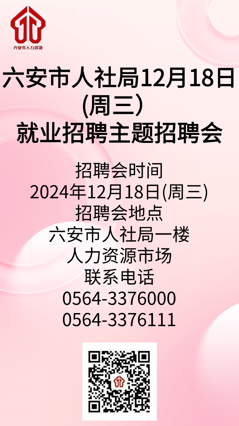 六安市人社局12月18日(周三)就业招聘主题招聘会
