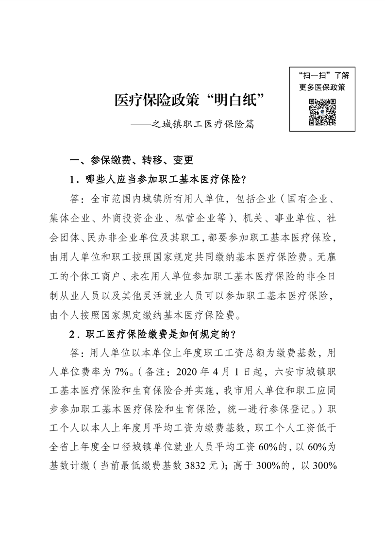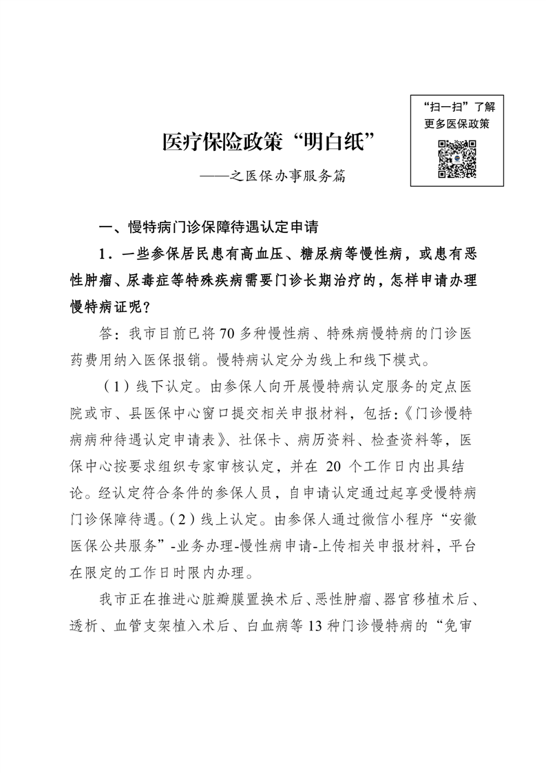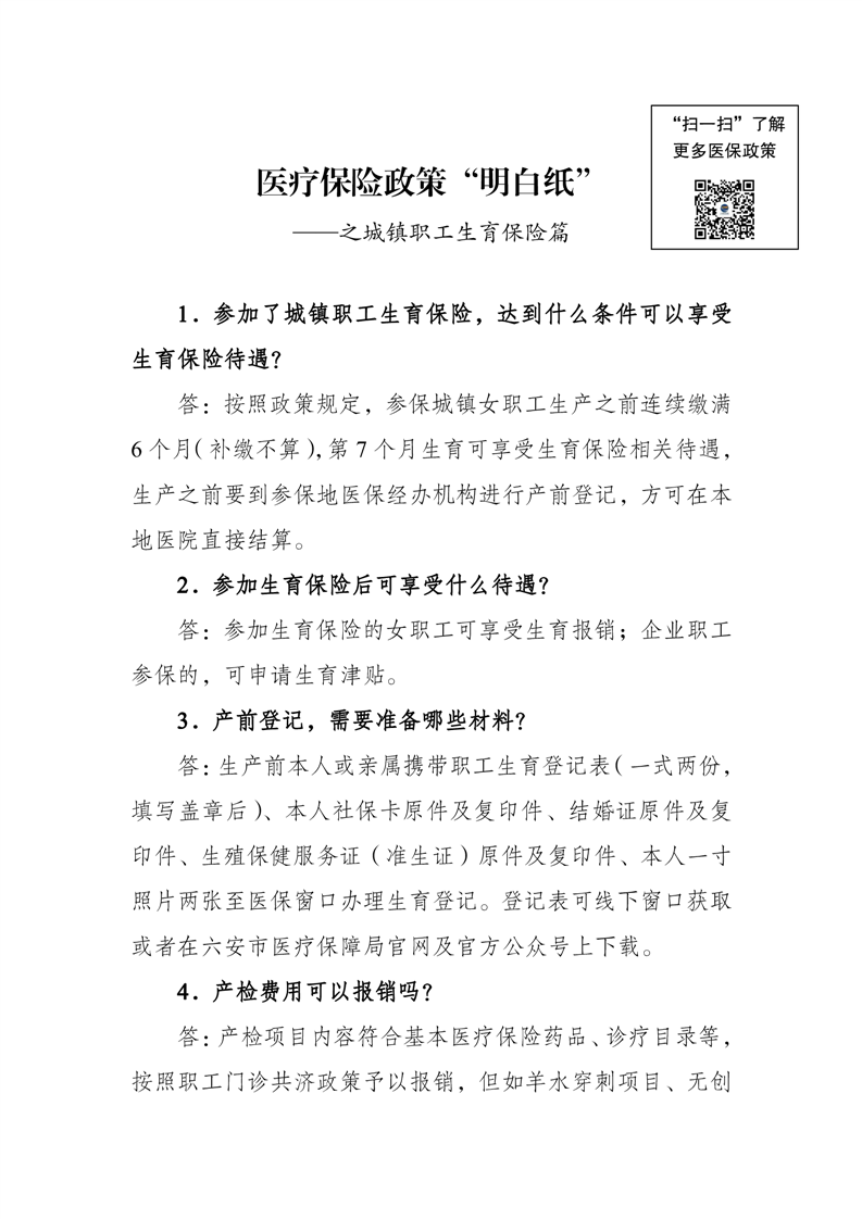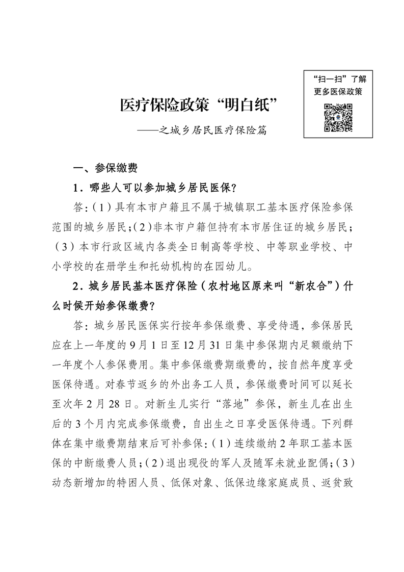 医疗保险政策“明白纸”