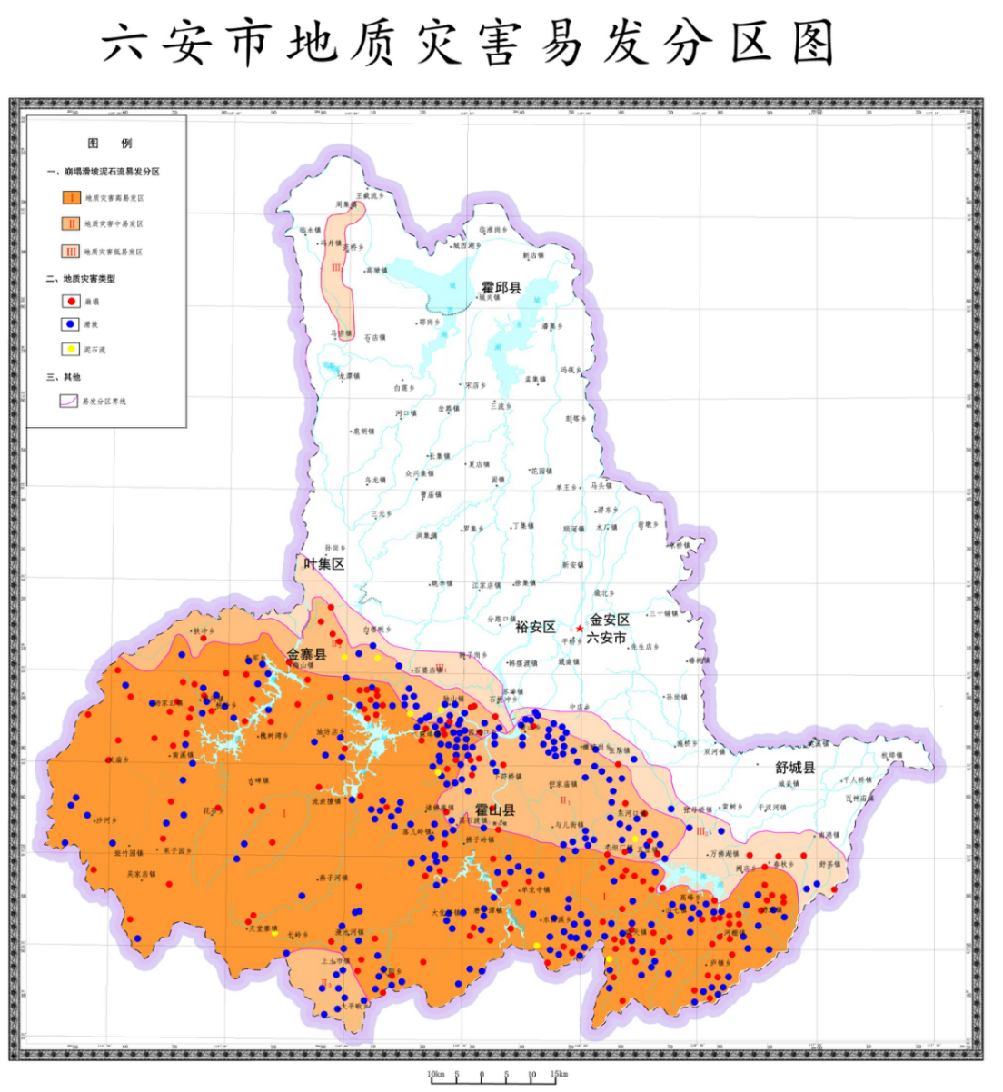 1.金寨县双河镇-南溪镇、裕安区西河口乡、霍山县诸佛庵镇-磨子潭镇崩塌、滑坡、泥石流重点防治区(A1)