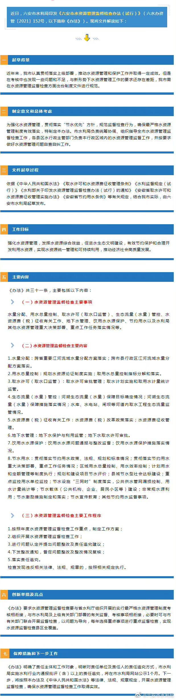 关于六安市水资源管理监督检查办法(试行)的起草说明