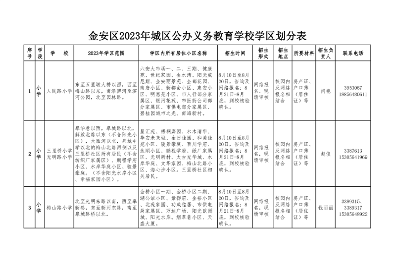 【学区划分】2023年六安市主城区学区划分明细表(金安区)