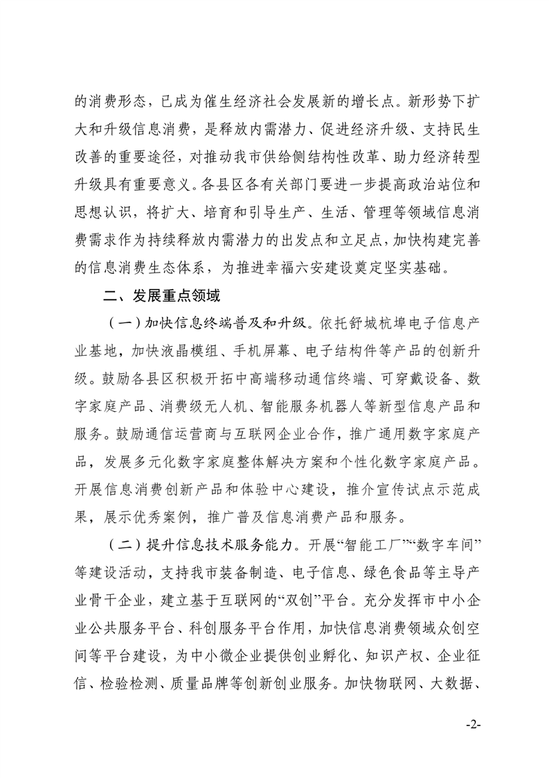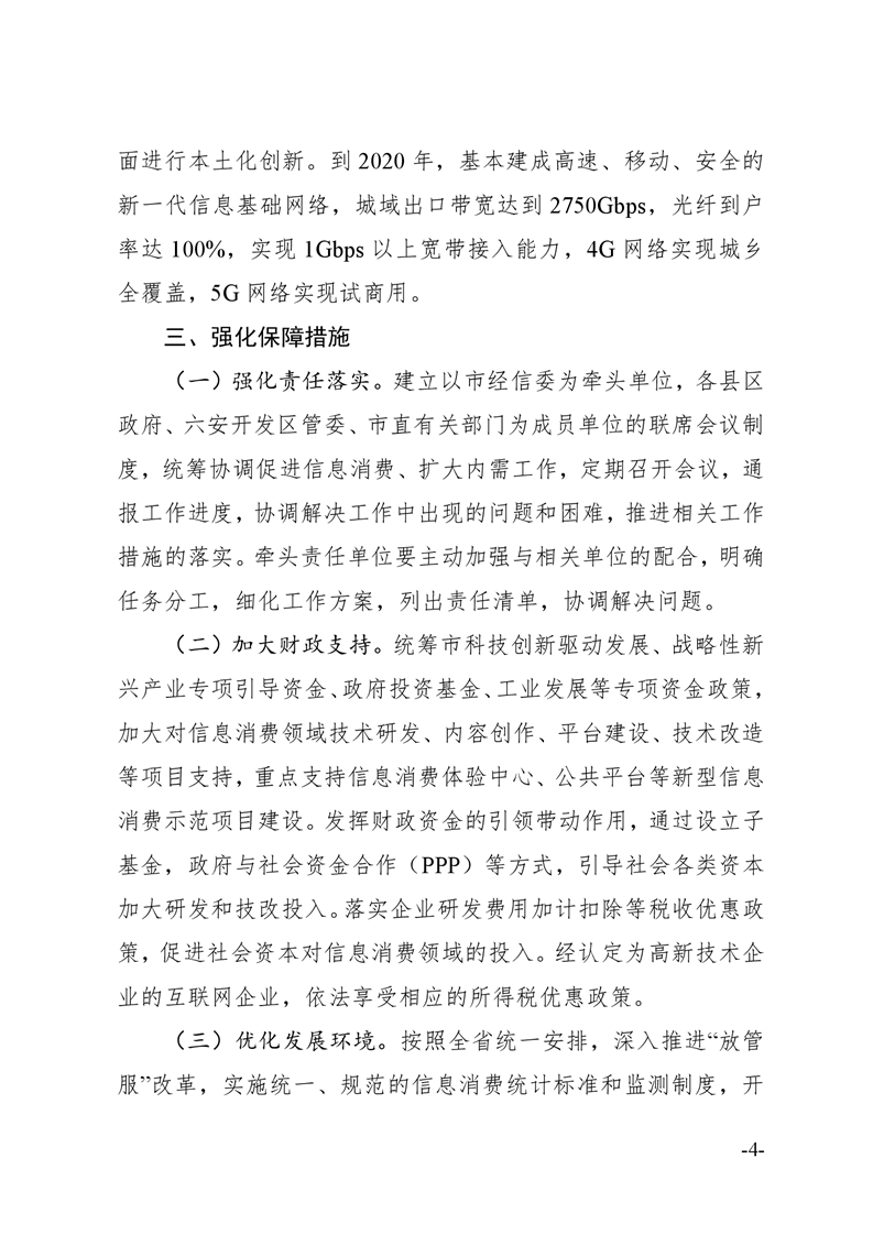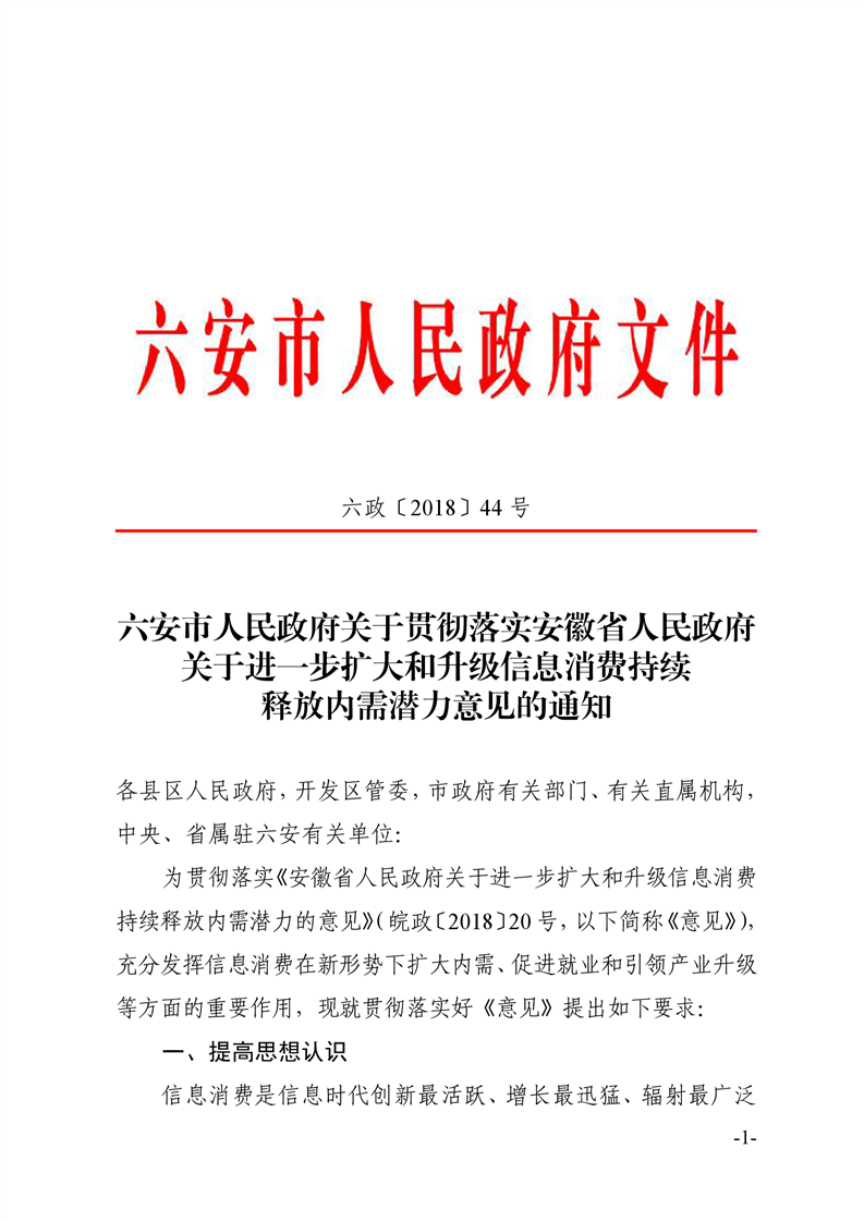 六安市人民政府关于贯彻落实安徽省人民政府关于进一步扩大和升级信息消费持续释放内需潜力意见的通知.pdf