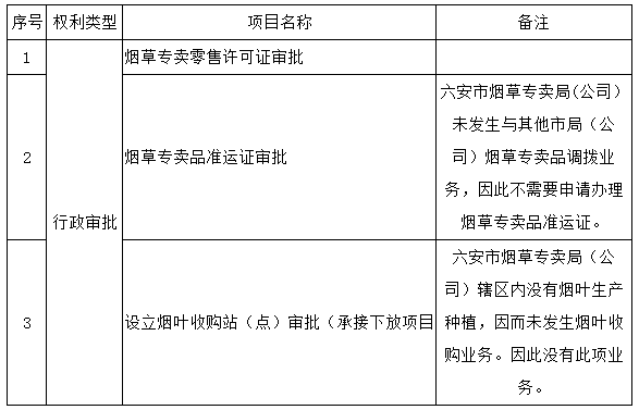 六安市烟草专卖局2025年行政许可目录
