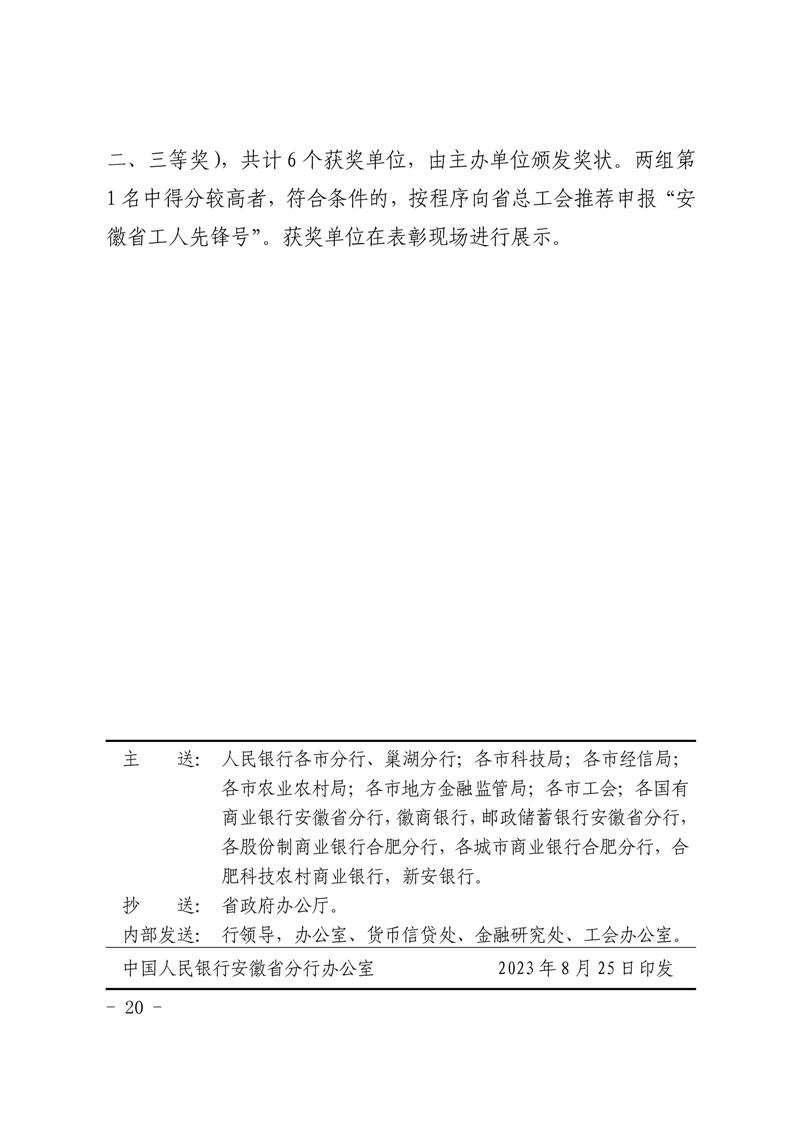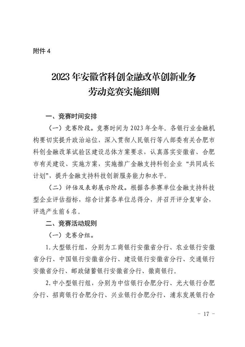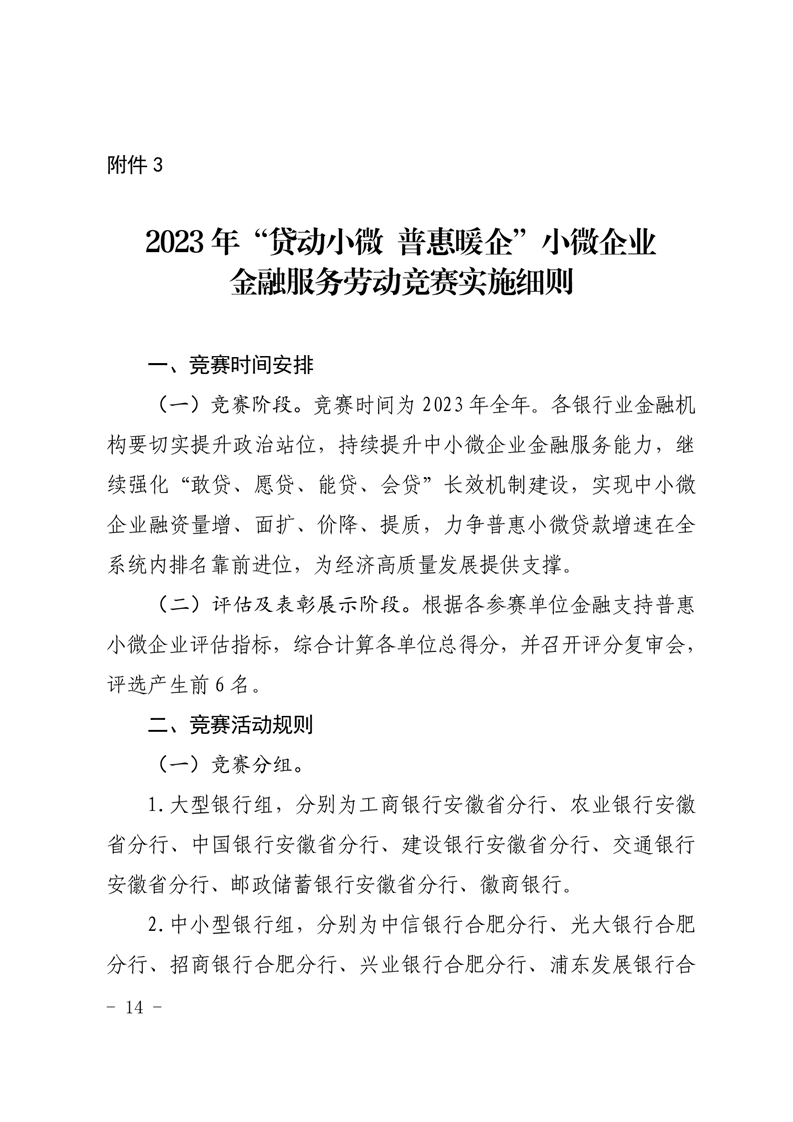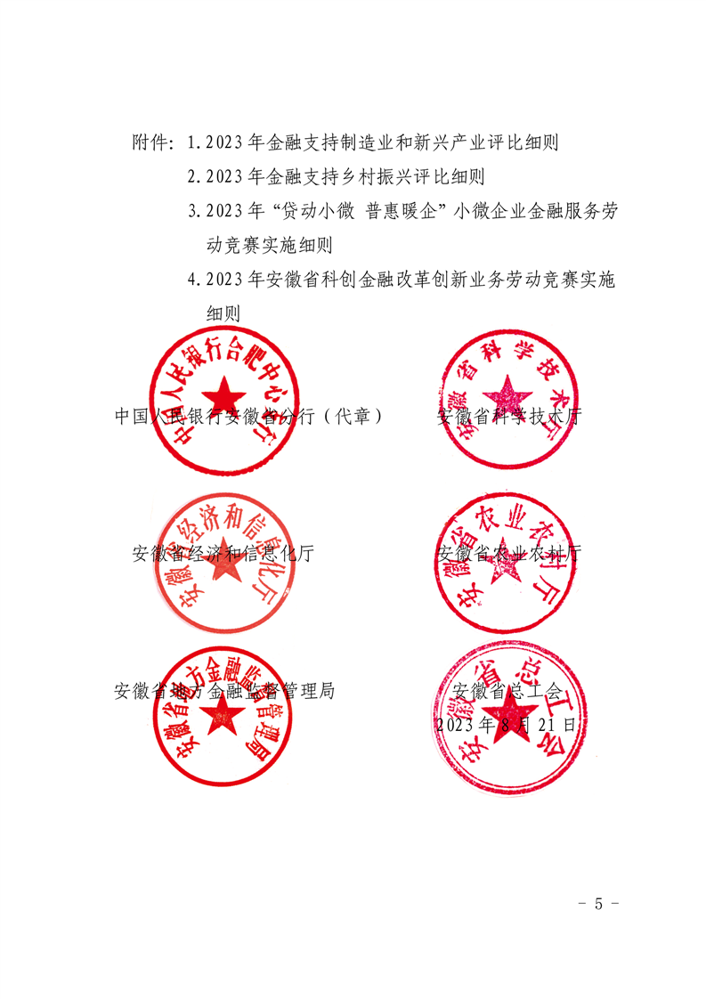 中国人民银行安徽省分行省科学技术厅省经济和信息化厅省农业农村厅省地方金融监管局省总工会关于开展2023年安徽省金融支持高质量发展劳动竞赛的通知
