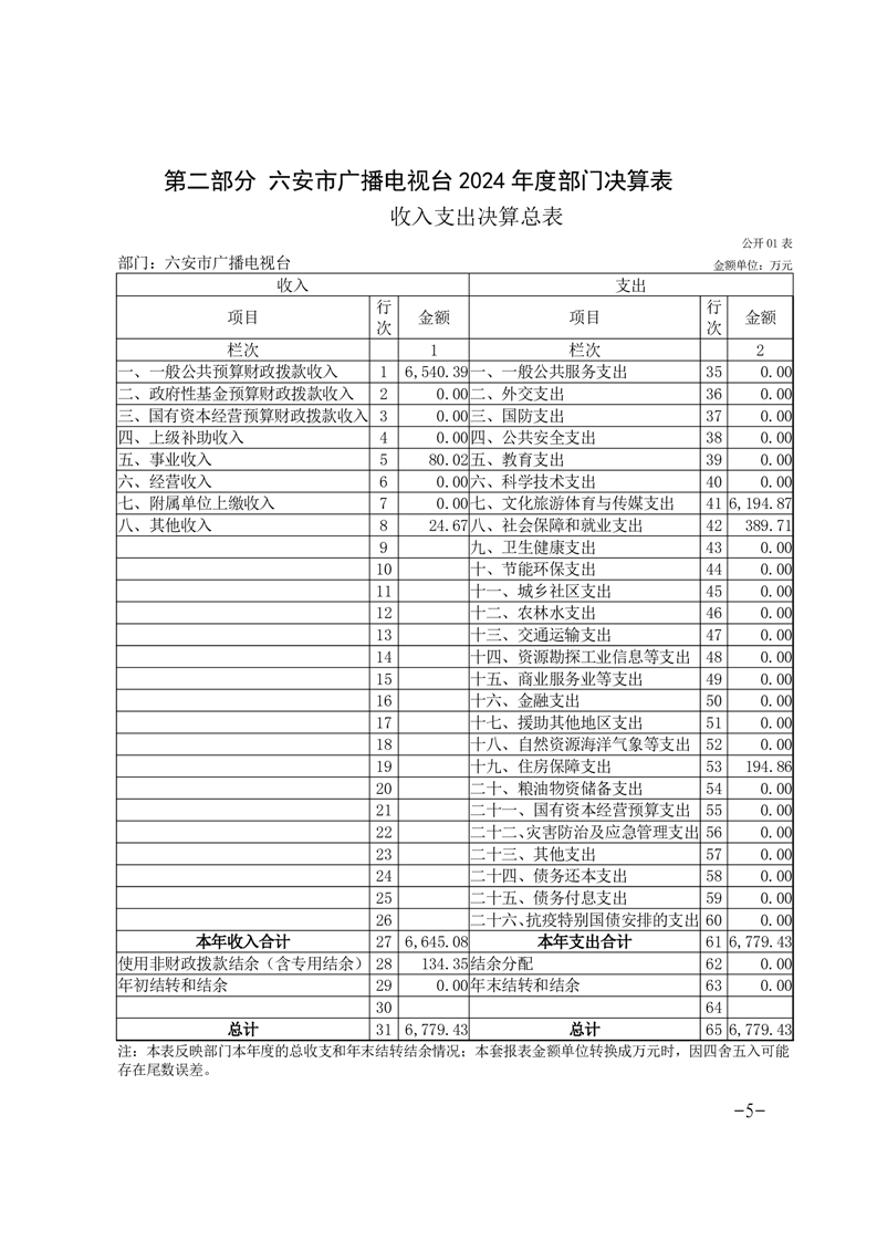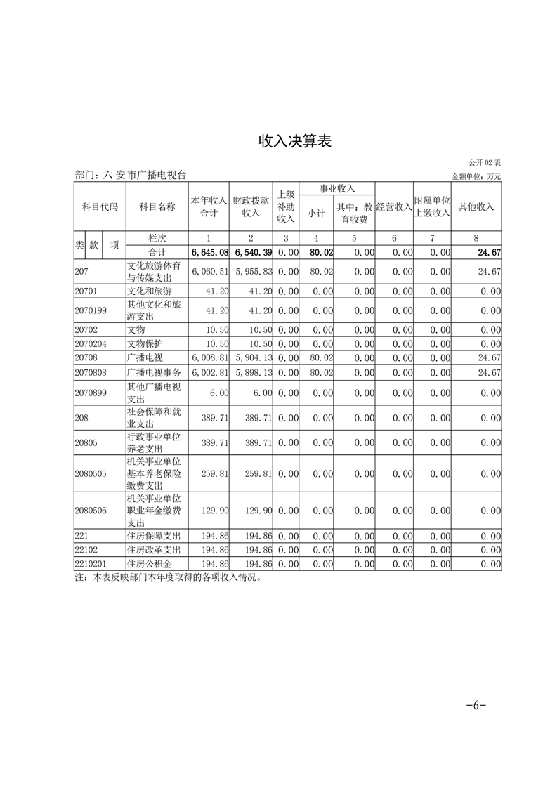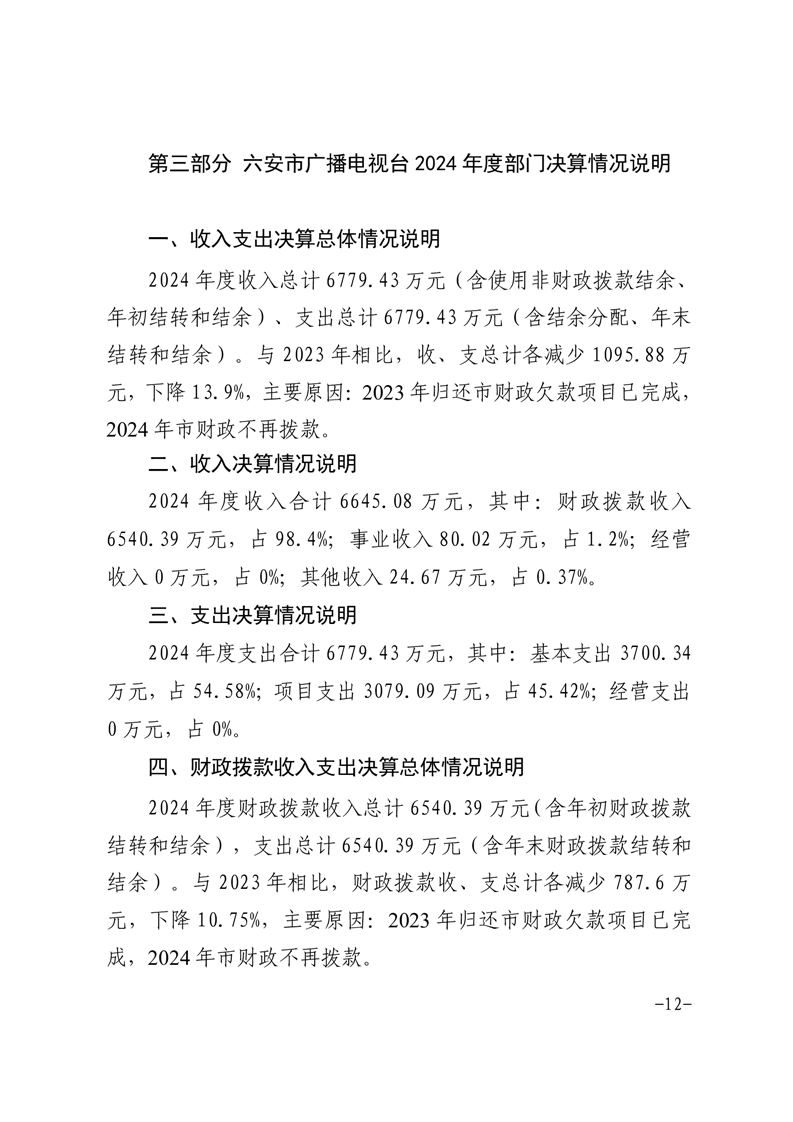 六安市广播电视台2024年度部门决算