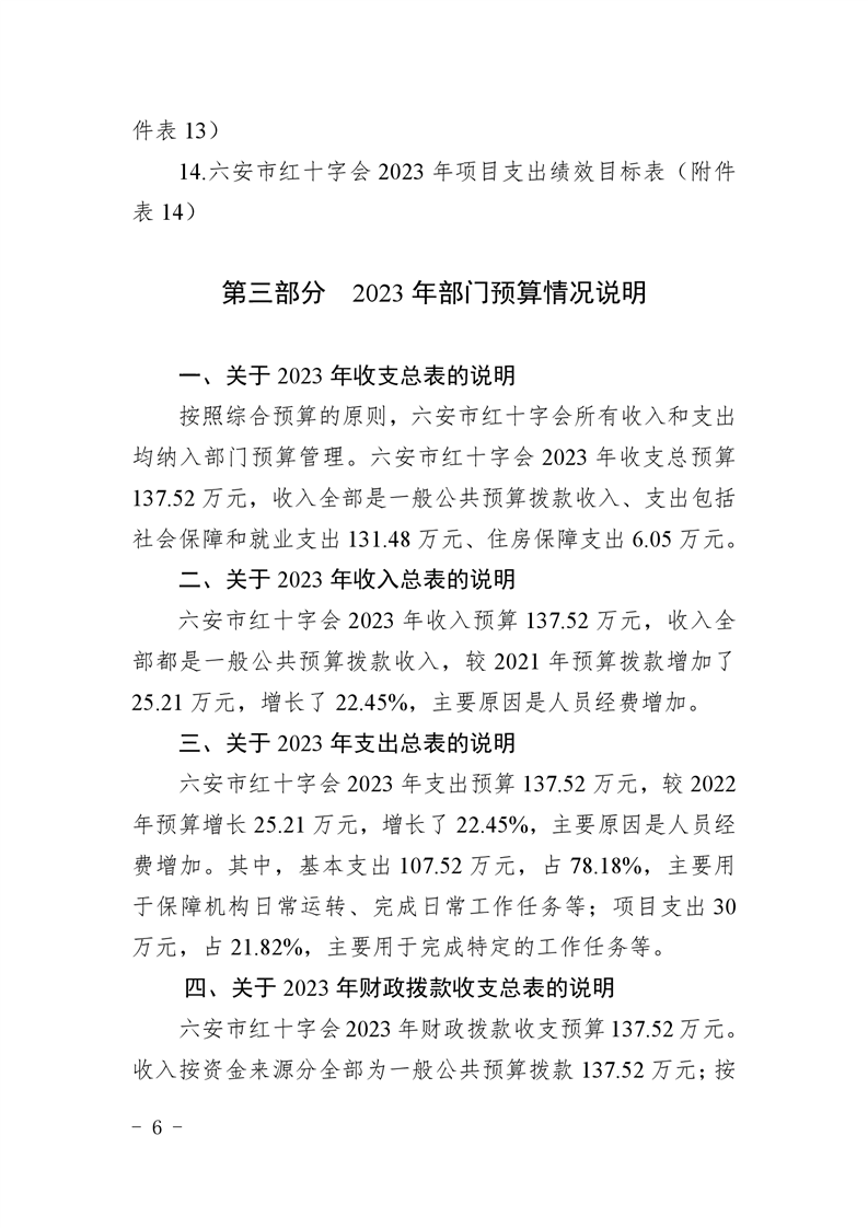 六安市红十字会2023年部门预算公开