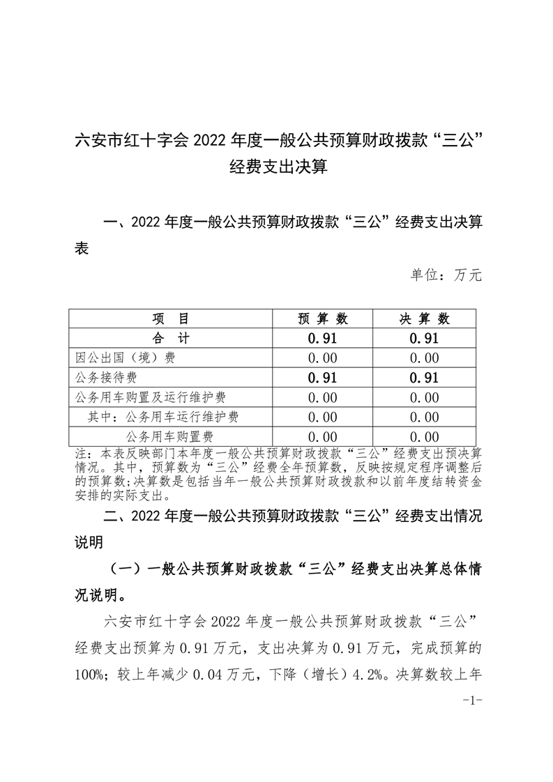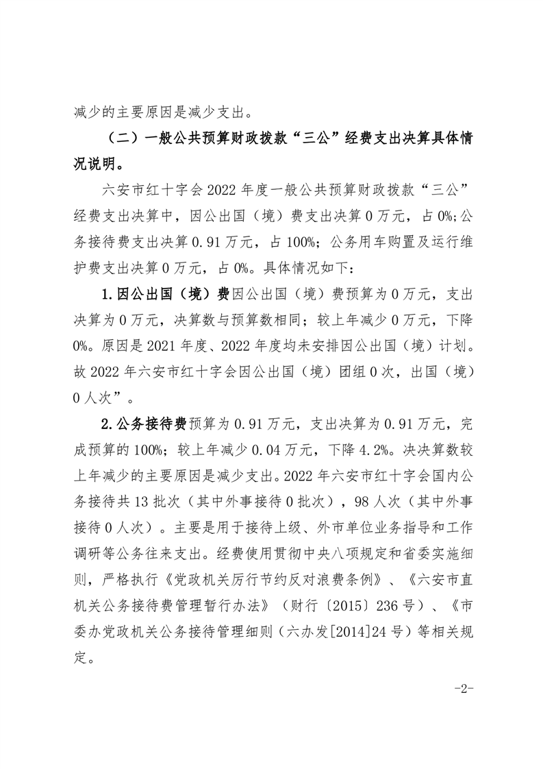 六安市红十字会 2022 年度一般公共预算财政拨款“三公”经费支出决算