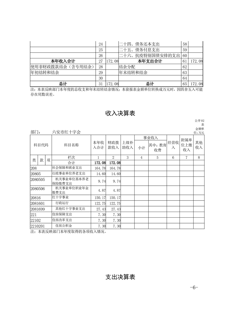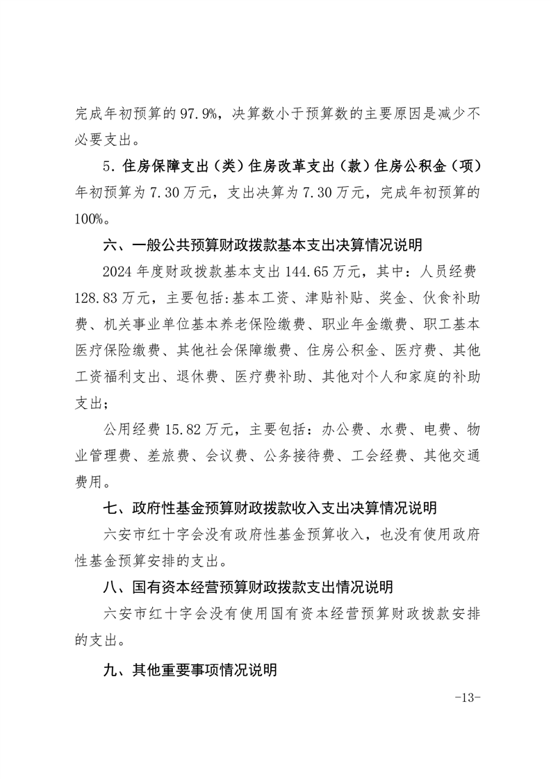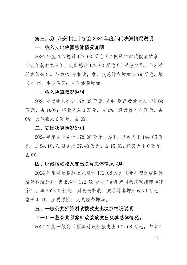 六安市红十字会 2024 年度部门决算
