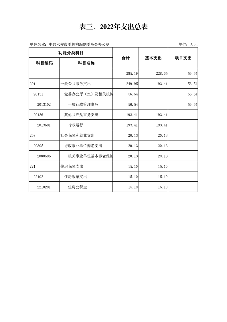 3.中共六安市委编办2022年支出总表(附件表3)