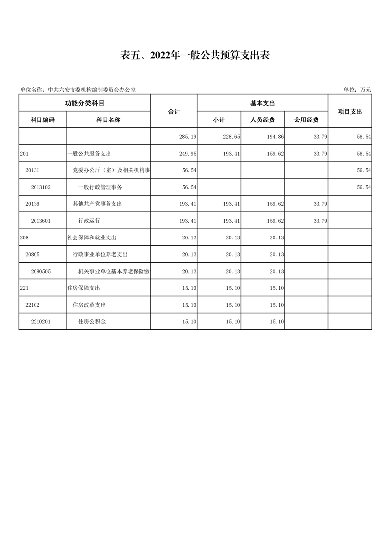 5.中共六安市委编办2022年一般公共预算支出表(附件表5)