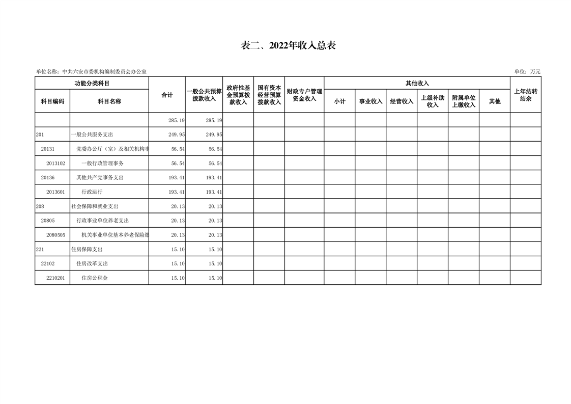 2.中共六安市委编办2022年收入总表(附件表2)
