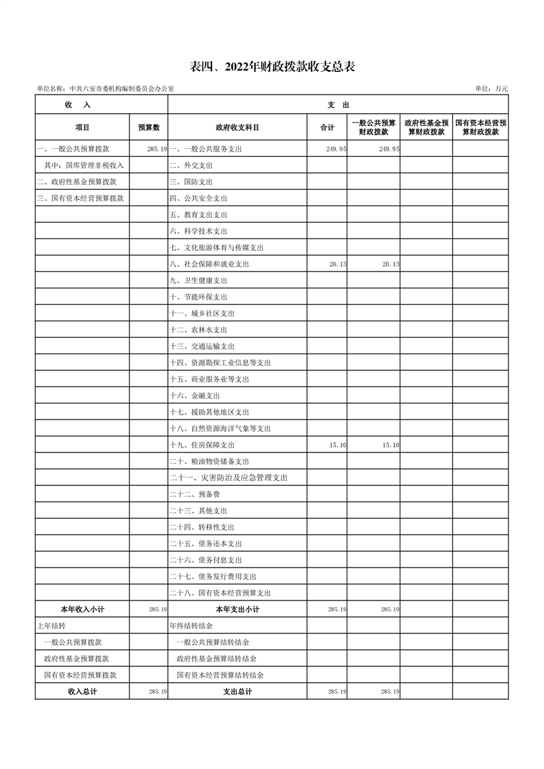 4.中共六安市委编办2022年财政拨款收支总表(附件表4)