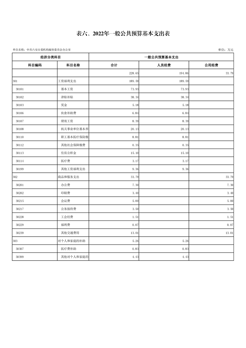 6.中共六安市委编办2022年一般公共预算基本支出表(附件表6)