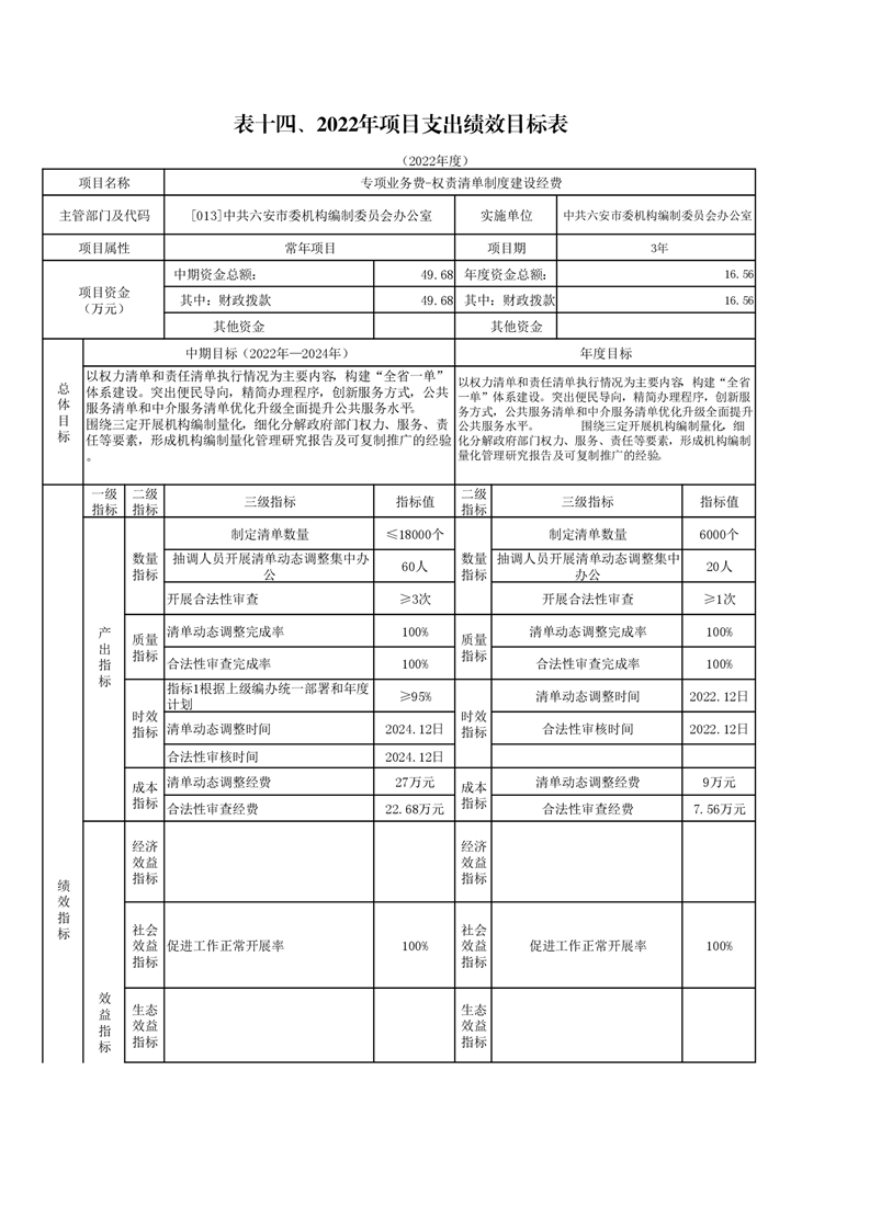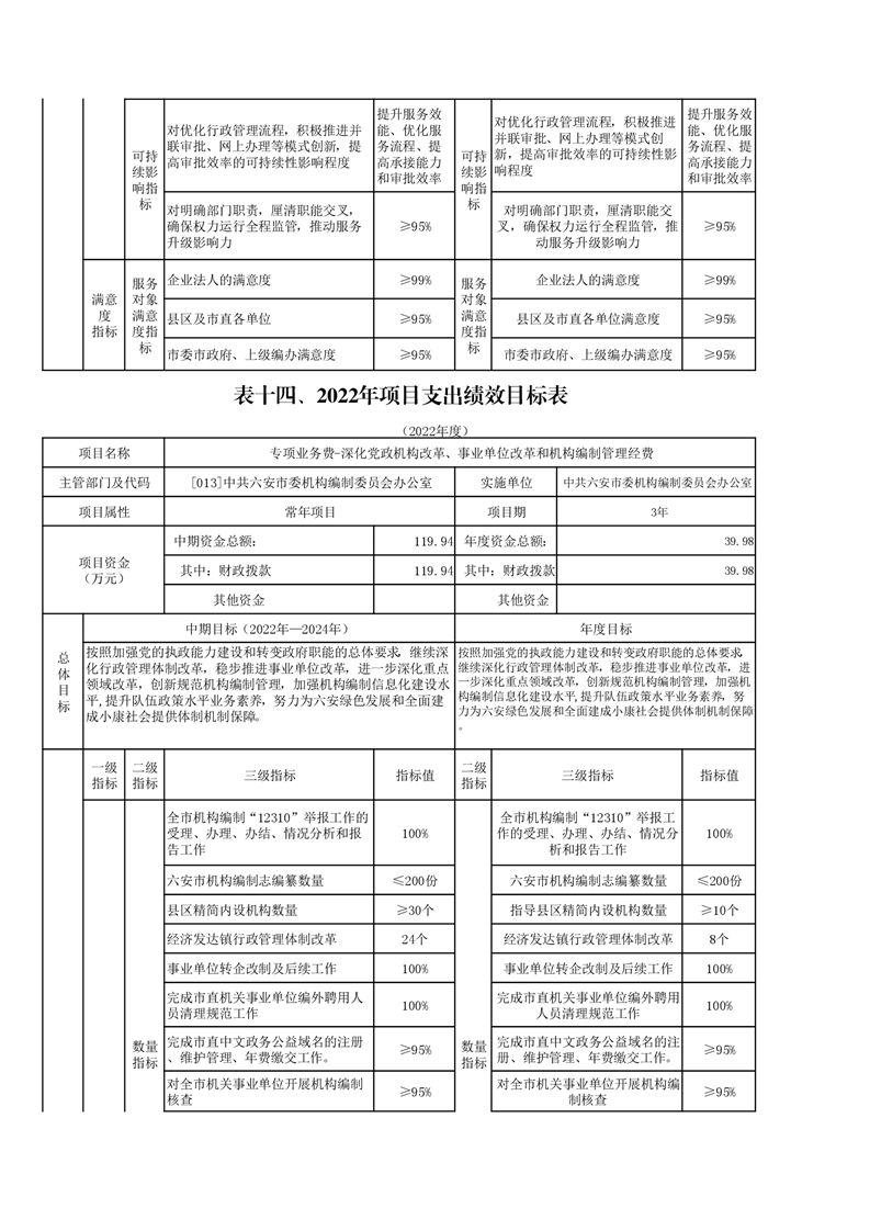 14.中共六安市委编办2022年项目支出绩效目标表