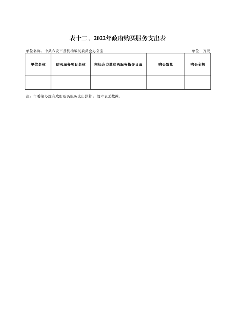 12.中共六安市委编办2022年政府购买服务支出表(附件表12)