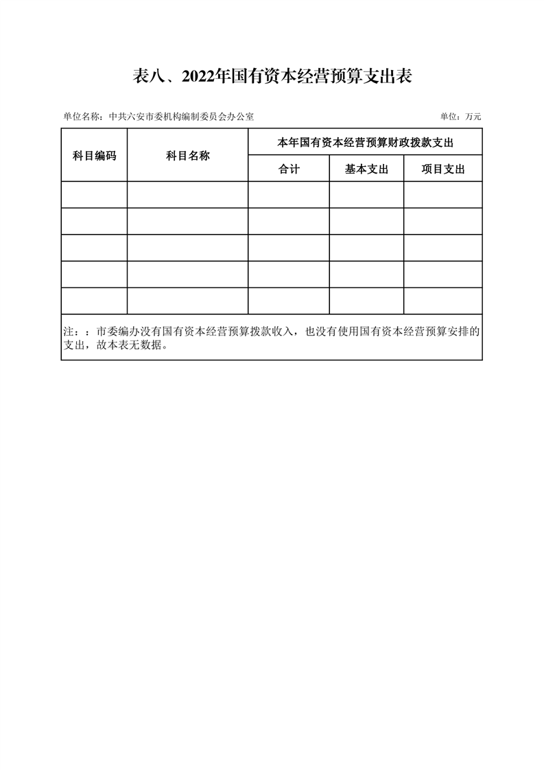 8.中共六安市委编办2022年国有资本经营预算支出表(附件表8)