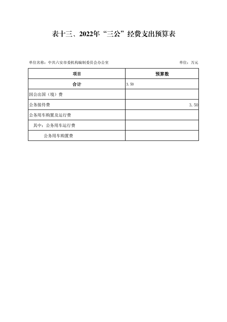 13.中共六安市委编办2022年“三公”经费支出预算表