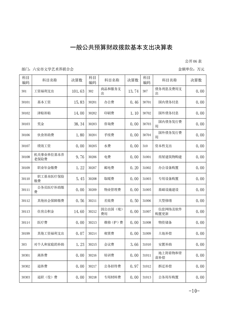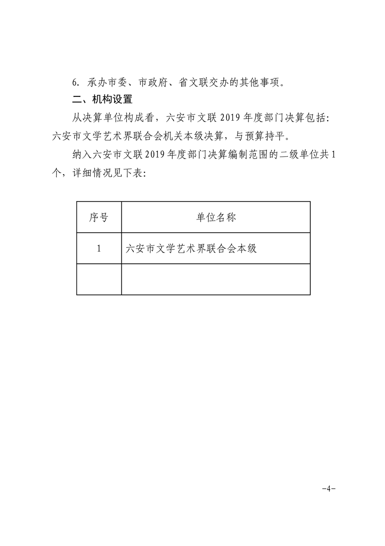 六安市文联2019年度部门决算及“三公”经费决算公开