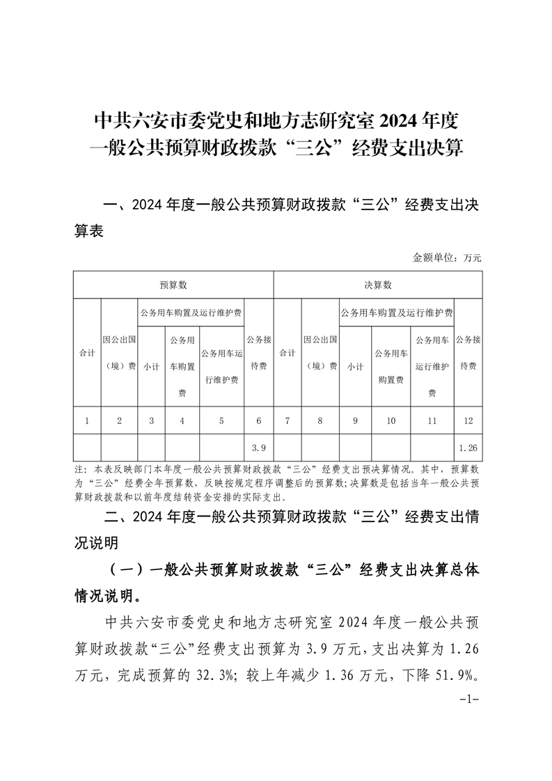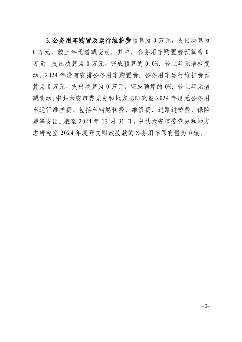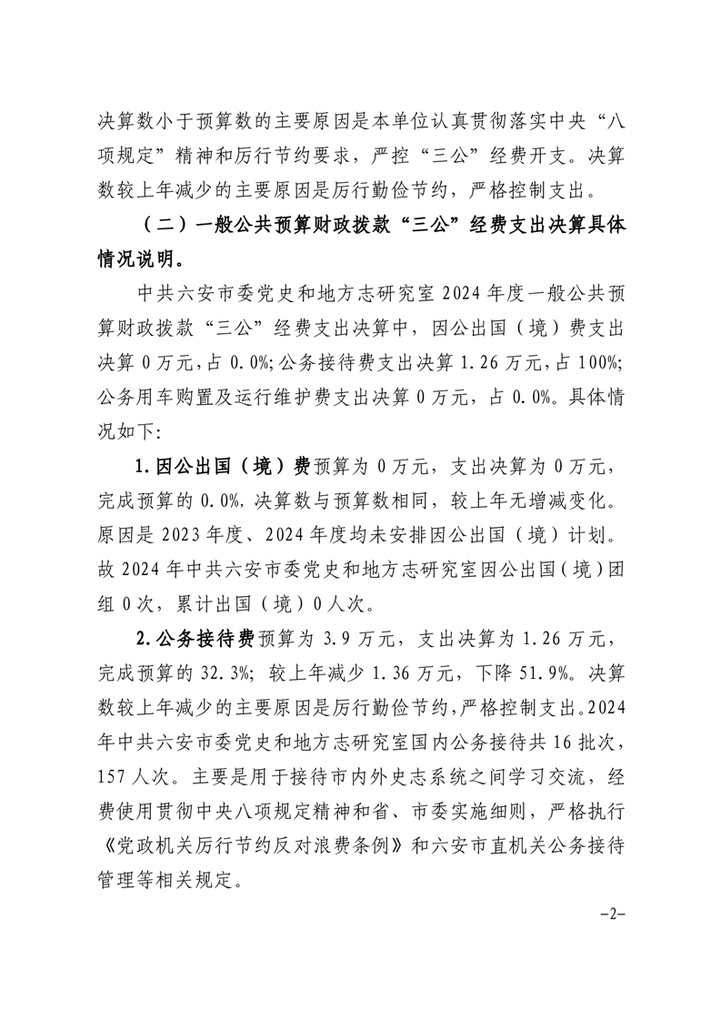 中共六安市委党史和地方志研究室2024年度一般公共预算财政拨款“三公”经费支出决算