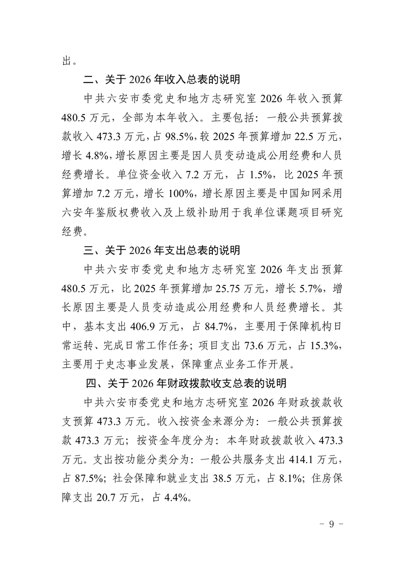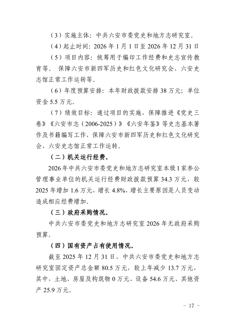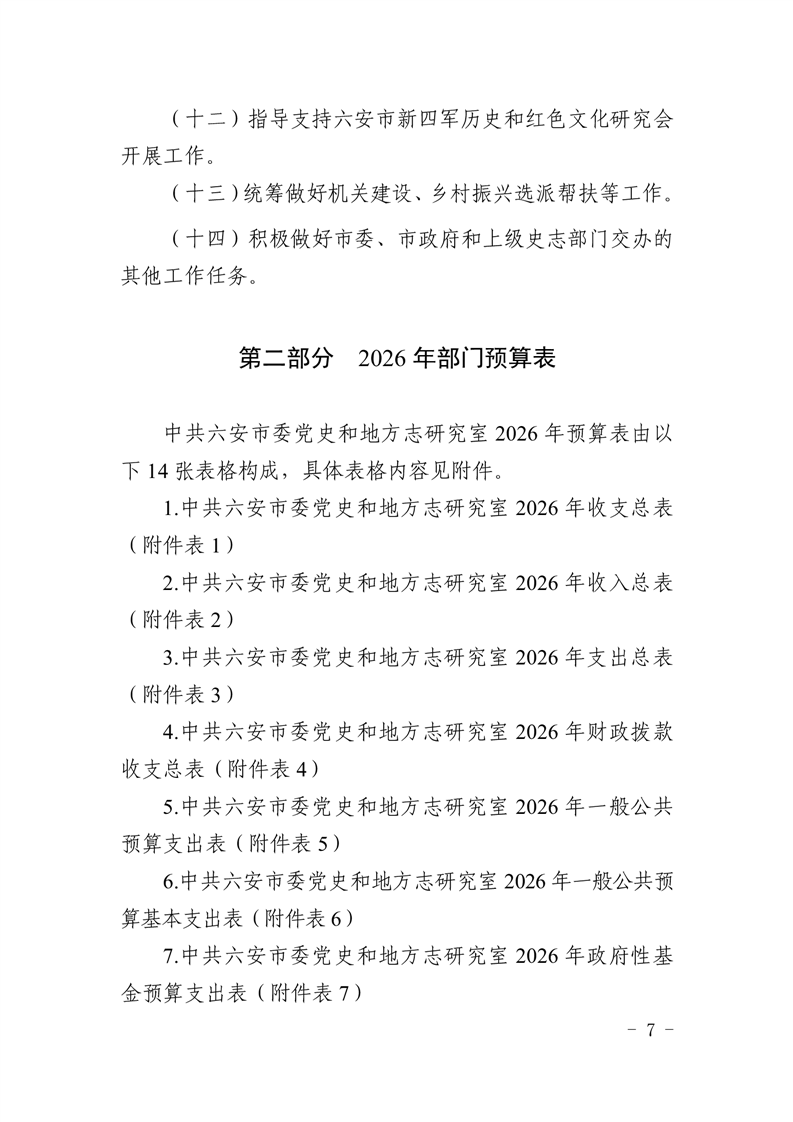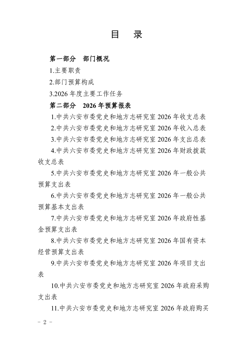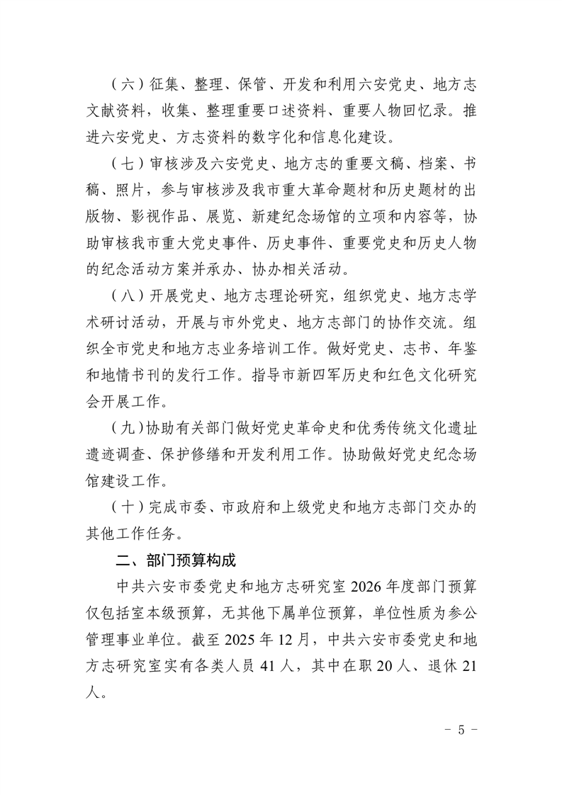 中共六安市委党史和地方志研究室2026年部门预算公开