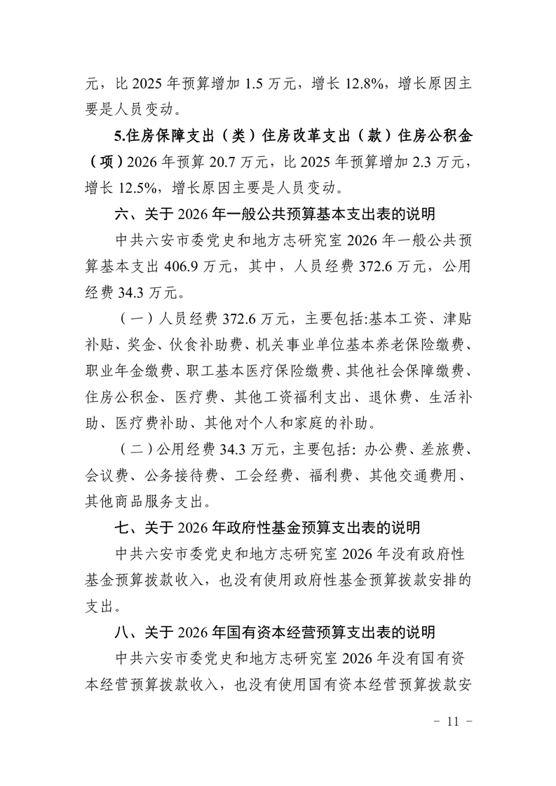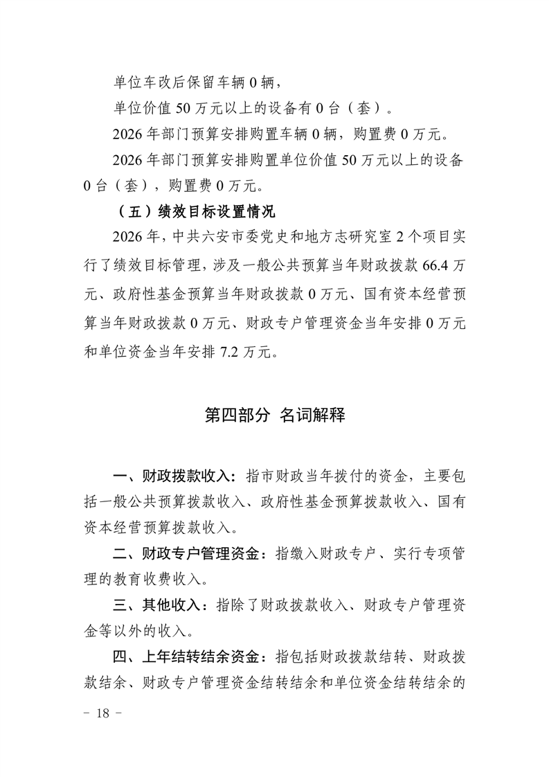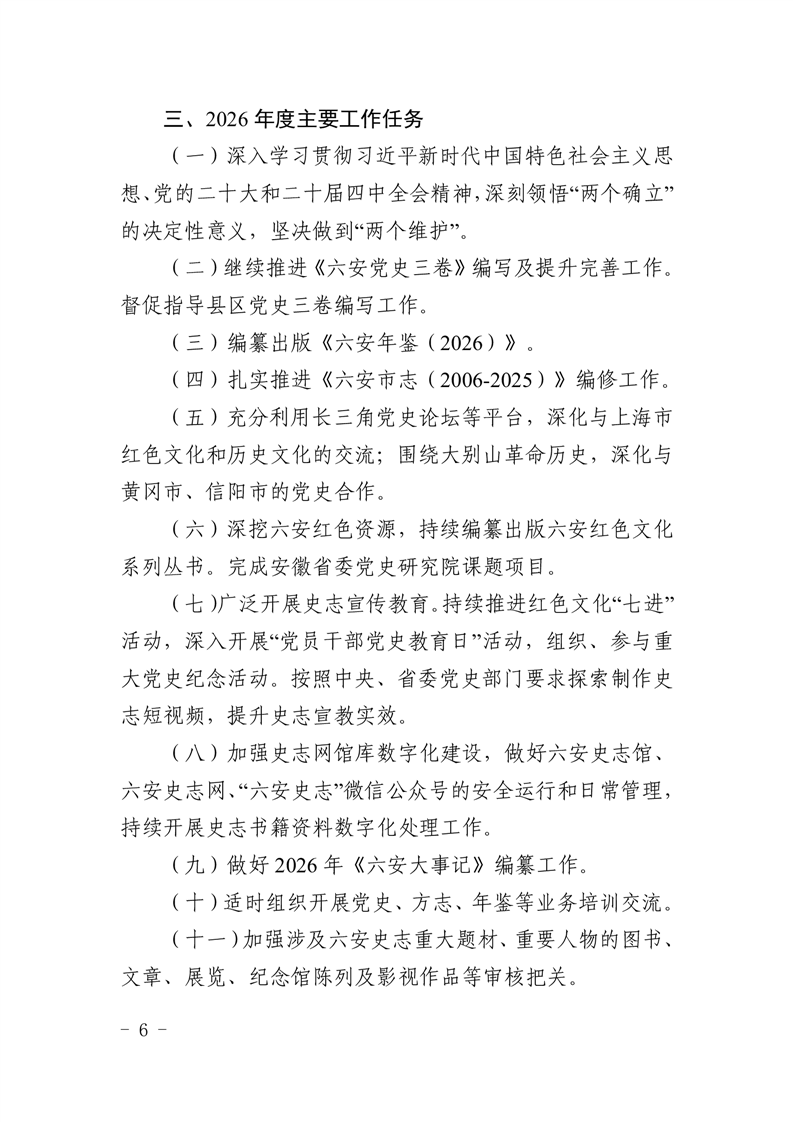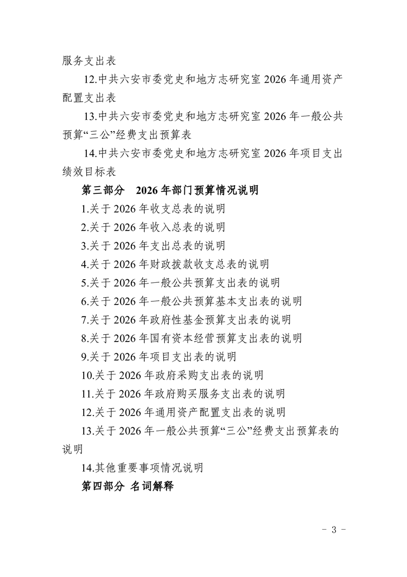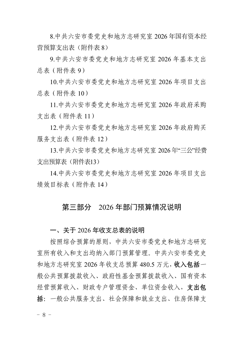 中共六安市委党史和地方志研究室2026年部门预算公开