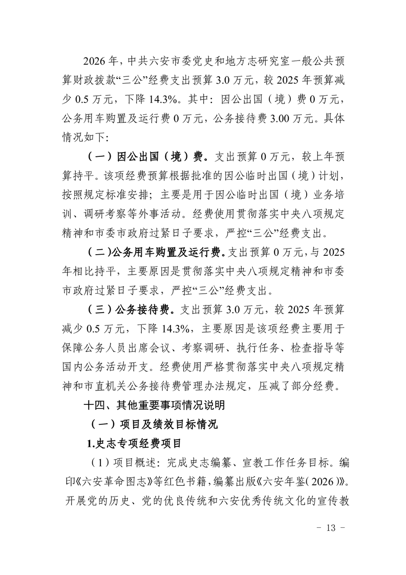 表十三、中共六安市委党史和地方志研究室2026年一般公共预算“三公”经费支出预算表.pdf