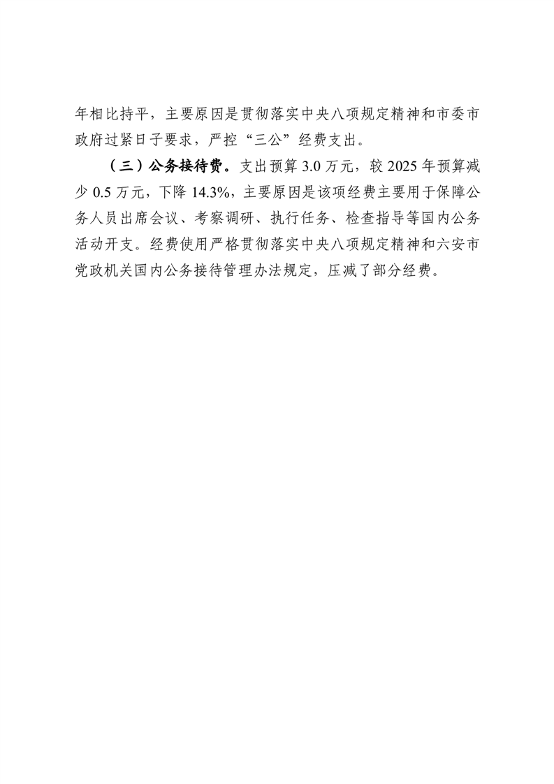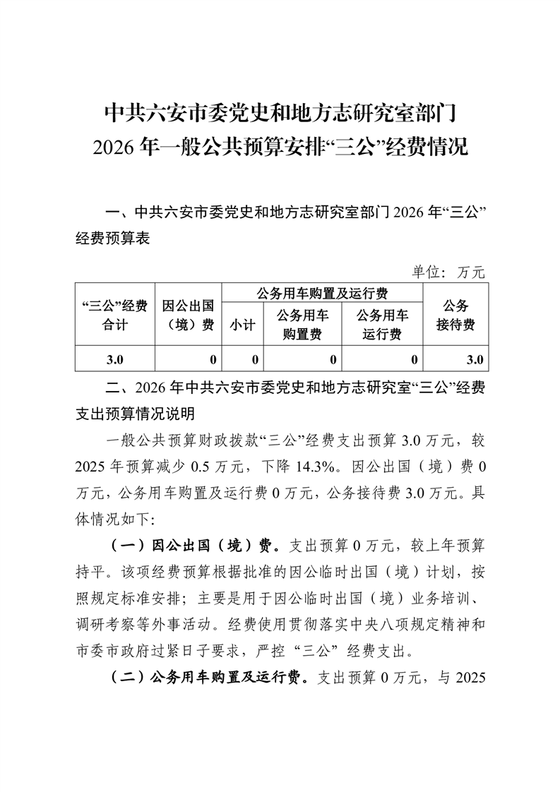 中共六安市委党史和地方志研究室部门2026年一般公共预算安排“三公”经费情况