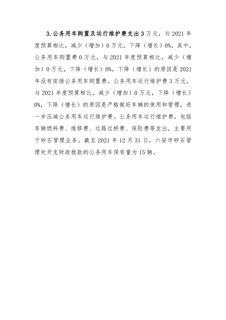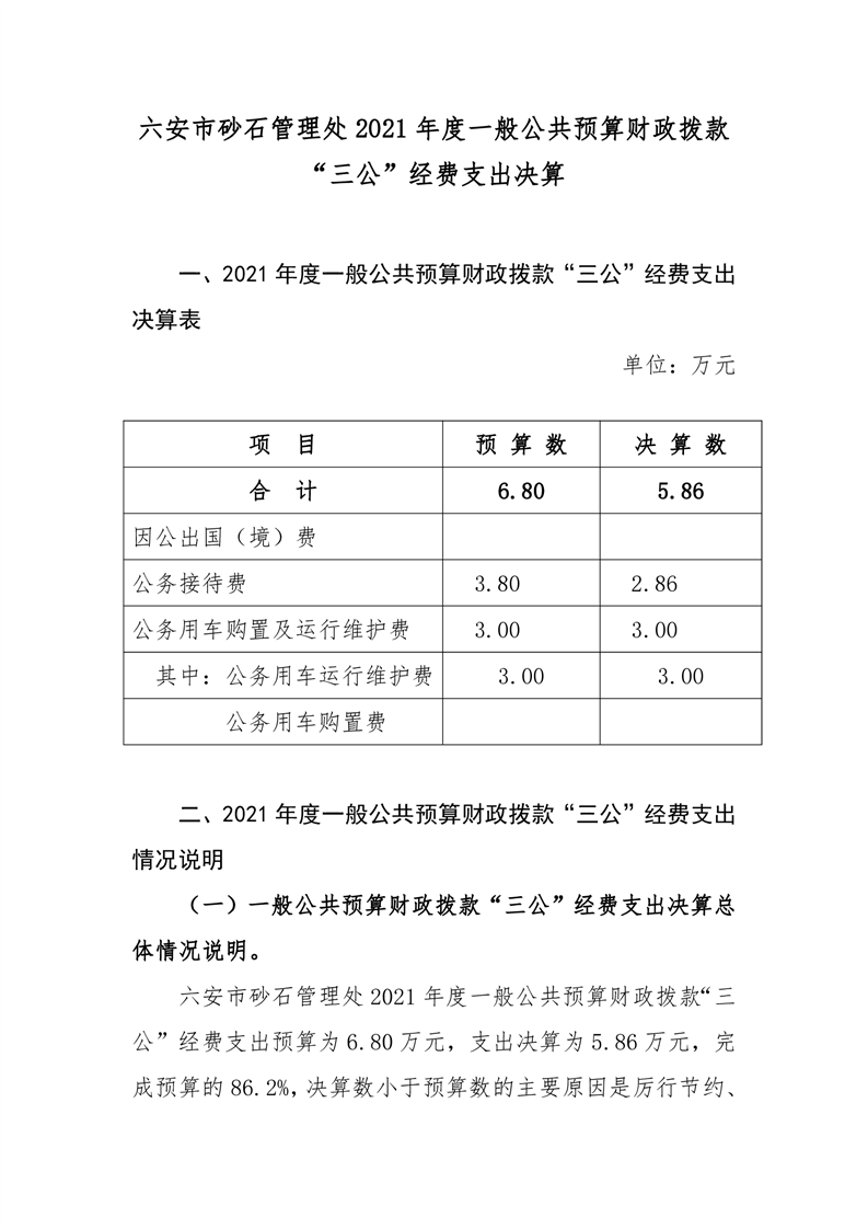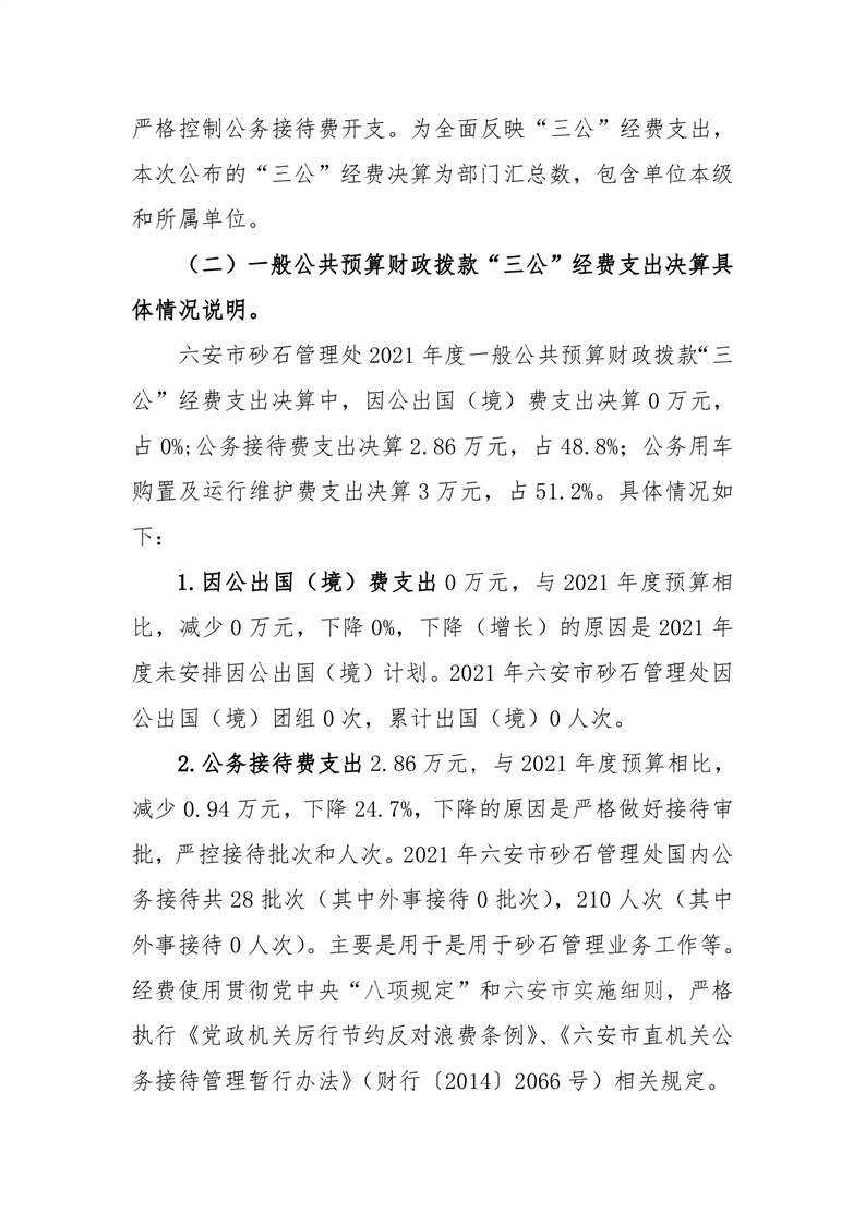 六安市砂石管理处2021年度一般公共预算财政拨款“三公”经费支出决算