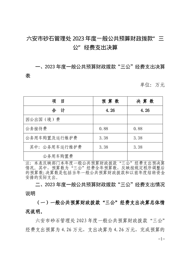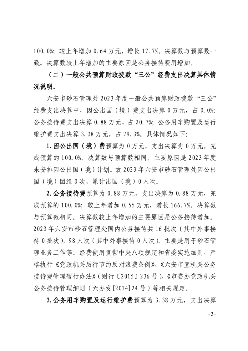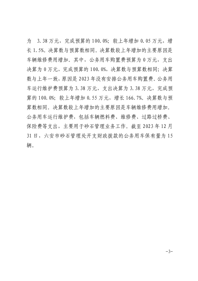 六安市砂石管理处2023年度一般公共预算财政拨款“三公”经费支出决算