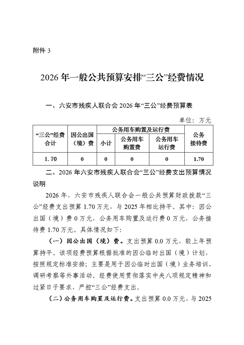 六安市残疾人联合会2026年一般公共预算安排“三公”经费情况