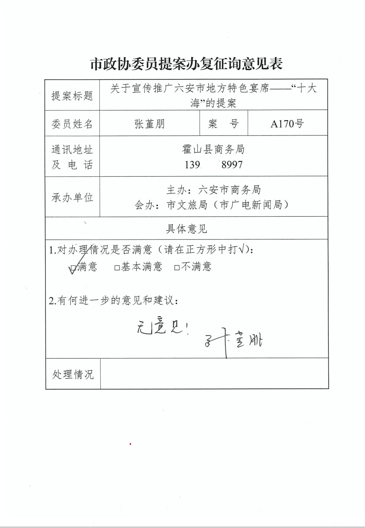 六安市商务局关于六安市政协六届二次会议第A170号提案的答复