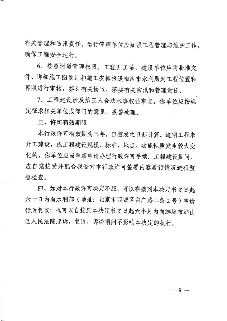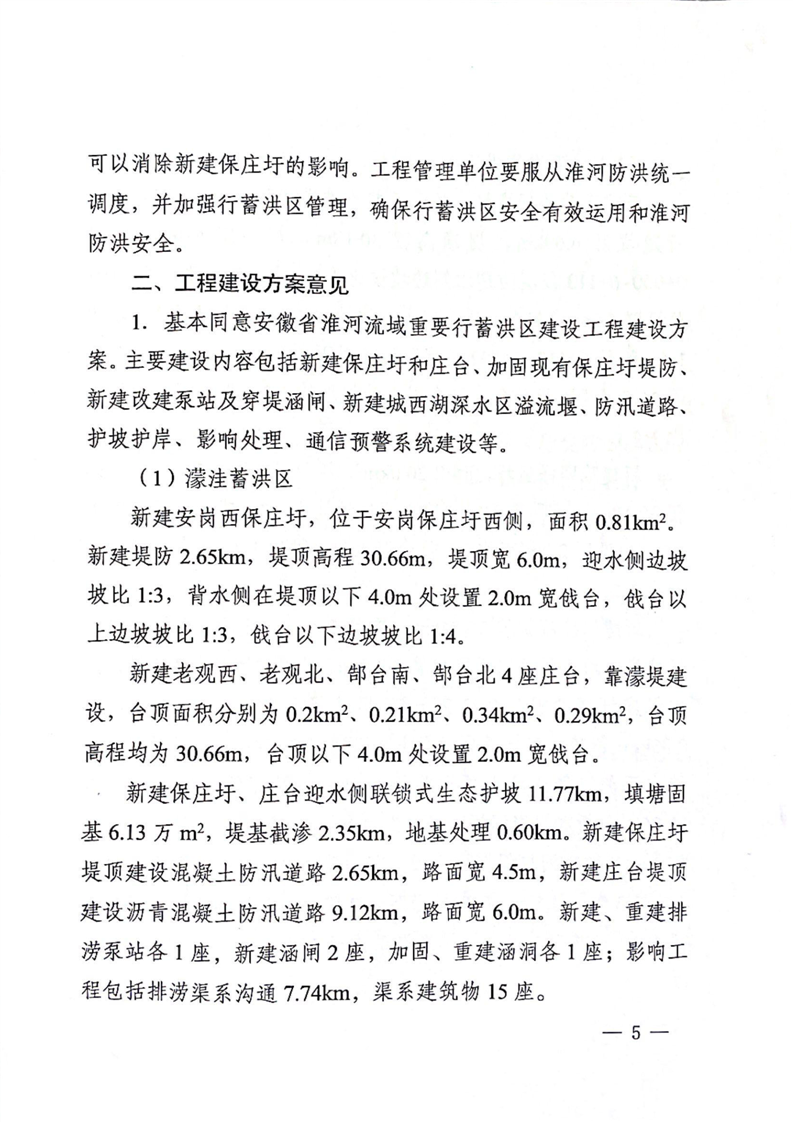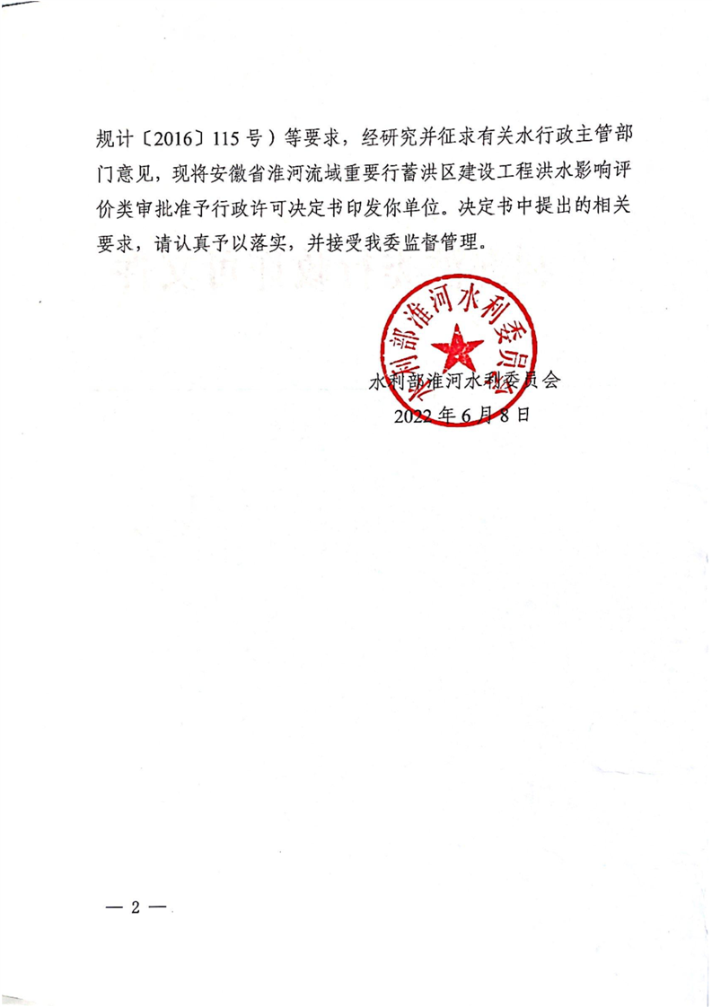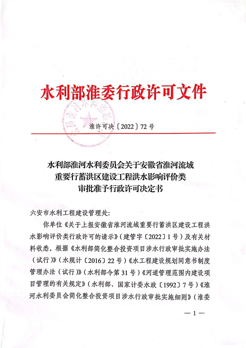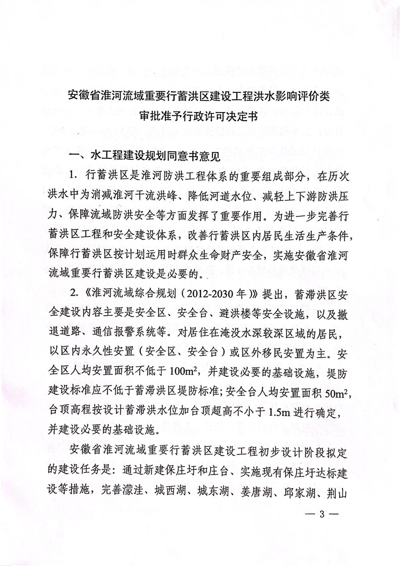水利部淮河水利委员会关于安徽省淮河流域重要行蓄洪区建设工程洪水影响评价类审批准予行政许可决定书