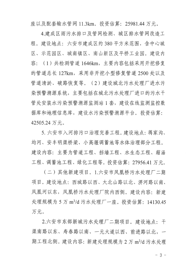 六安市发改委六安市城区水环境(厂-网-河)一体化综合治理一期PPP项目建议书的批复