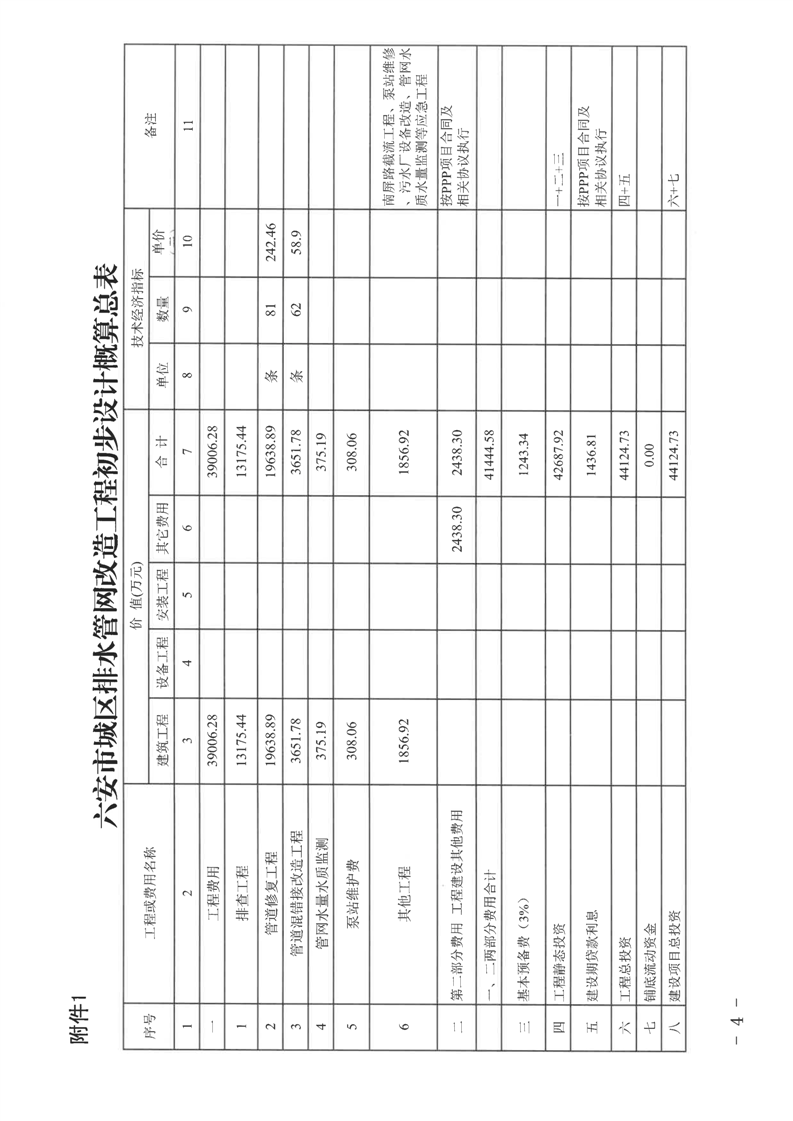 六安市发改委关于六安市城区排水管网改造工程初步设计的复函