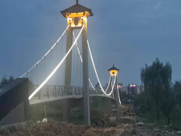 凤凰河岸百花艳,凤凰河上架索桥。近日,由六安市城市管理行政执法局牵头,市市政工程管理处负责,合肥市公路桥梁工程有限公司承建的“六安市凤凰河增设人行桥”主体工程,经过近九个月的紧张施工已于7月12日顺利完工,目前正在进行场地草皮种植、桥梁亮化安装等扫尾工作。
