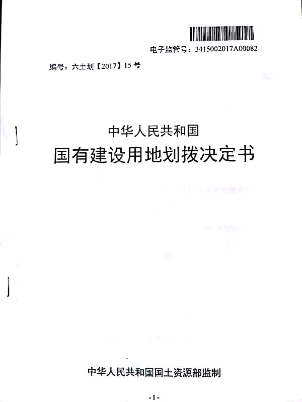 佛子岭路建设用地划拨决定书