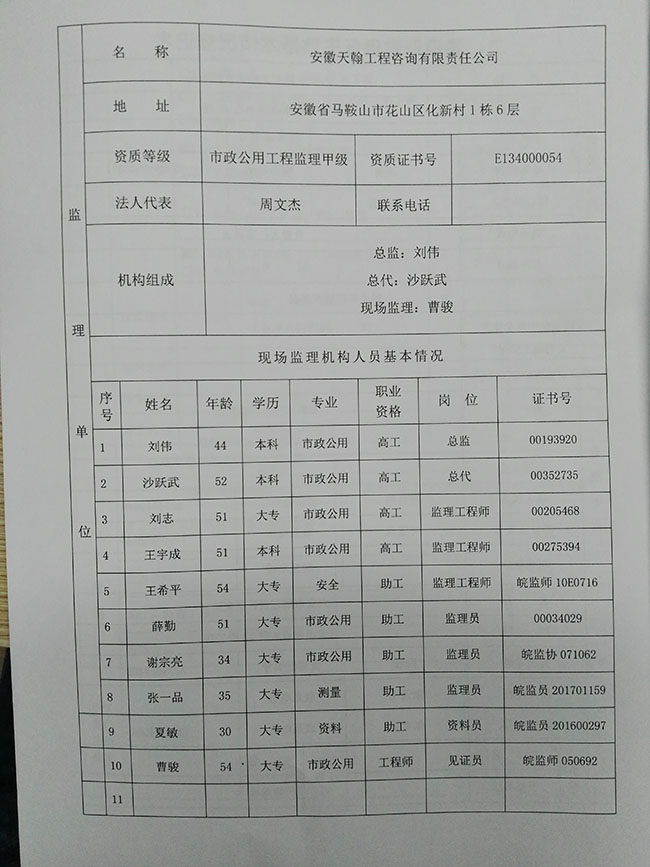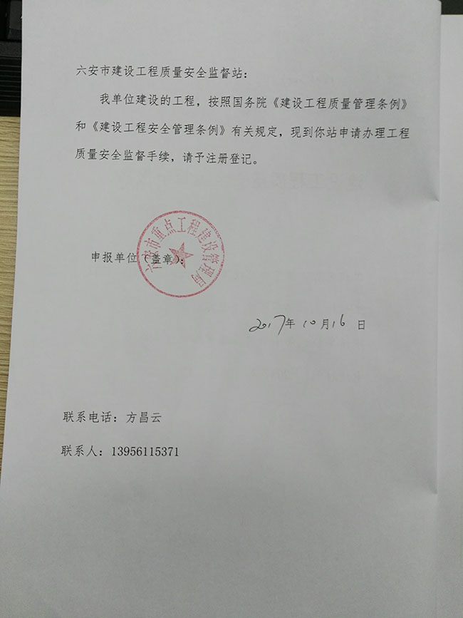 佛子岭路改造二标段质量安全监督申报表