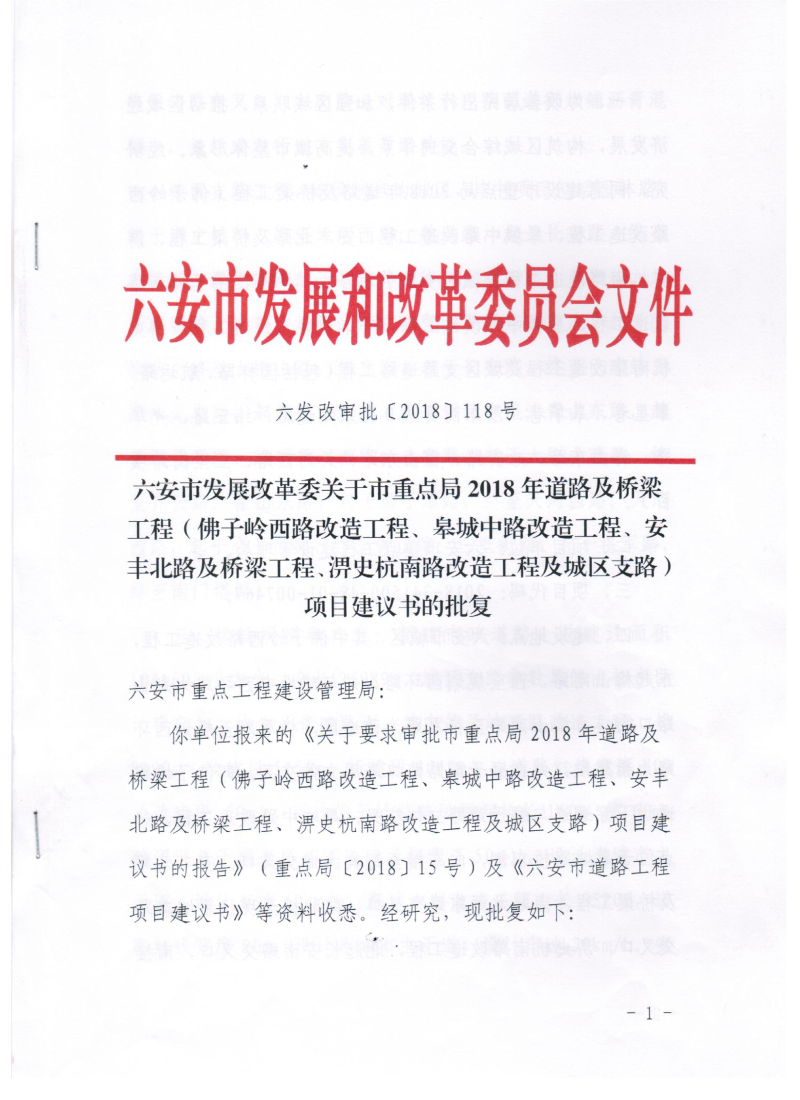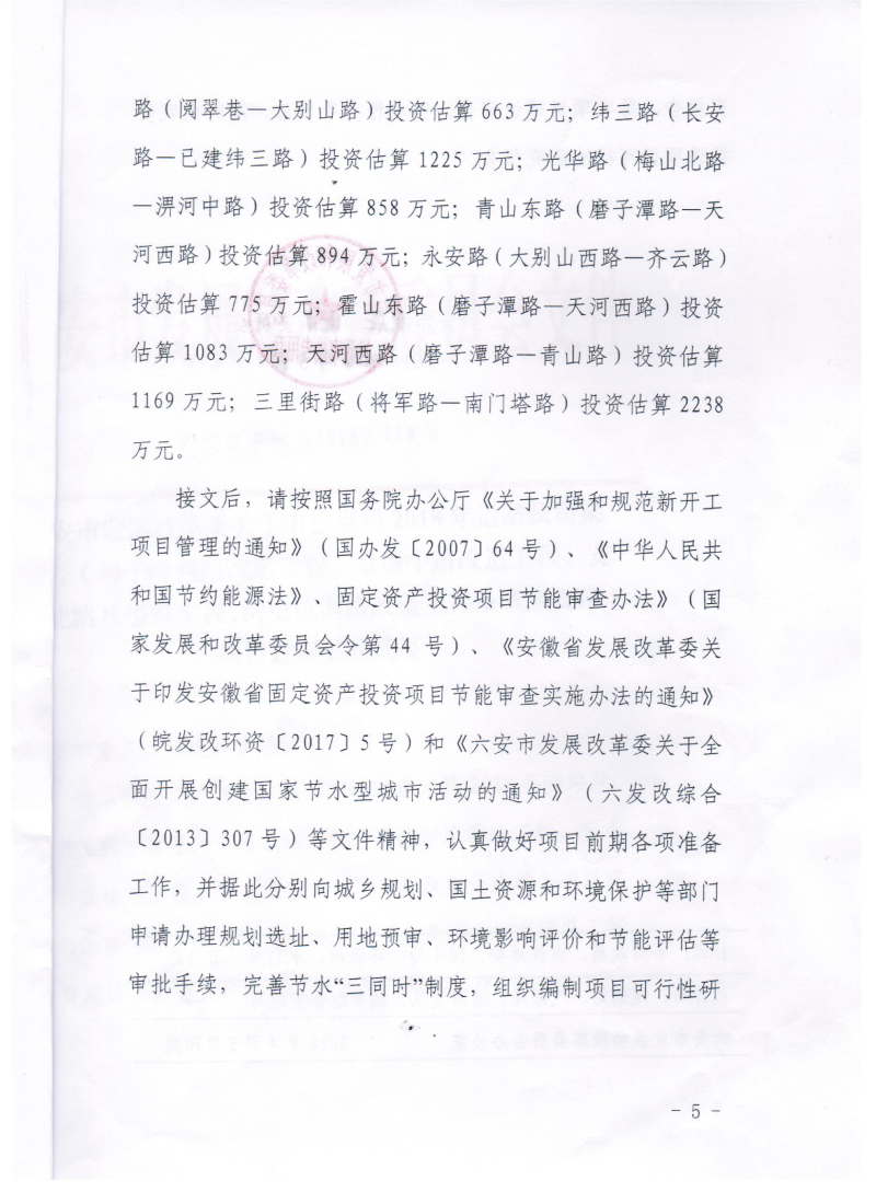 佛子岭西路(大别山路-梅山南路)改造工程项目建议书的批复