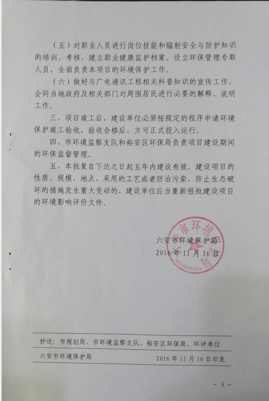 六安市广播电视发射塔迁建项目环境影响报告表的批复