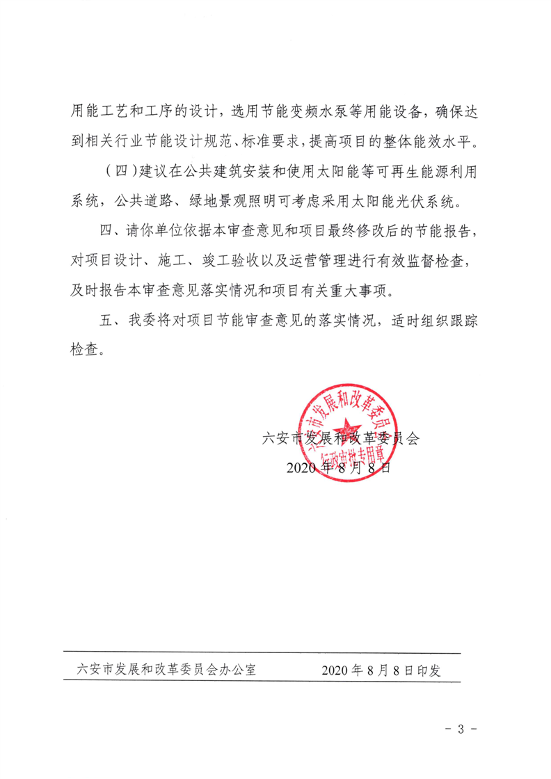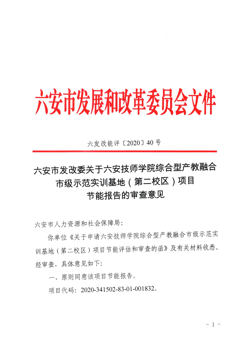 六安市发改委关于六安技师学院综合型产教融合市级示范实训基地(第二校区)项目节能报告的审查意见
