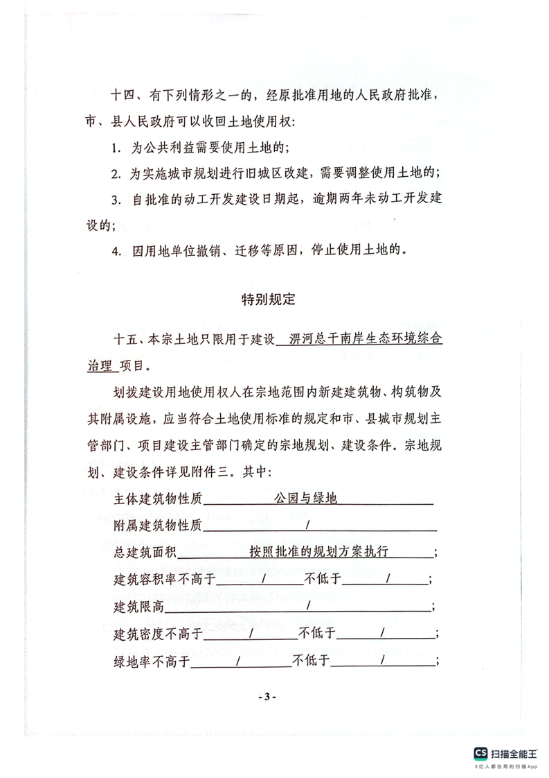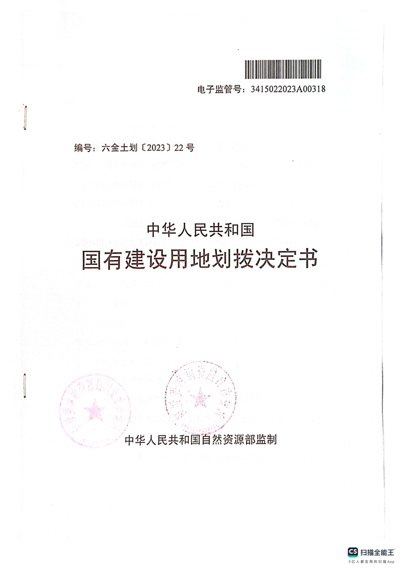 淠河总干南岸生态环境综合治理(赓续公园)项目划拨用地决定书