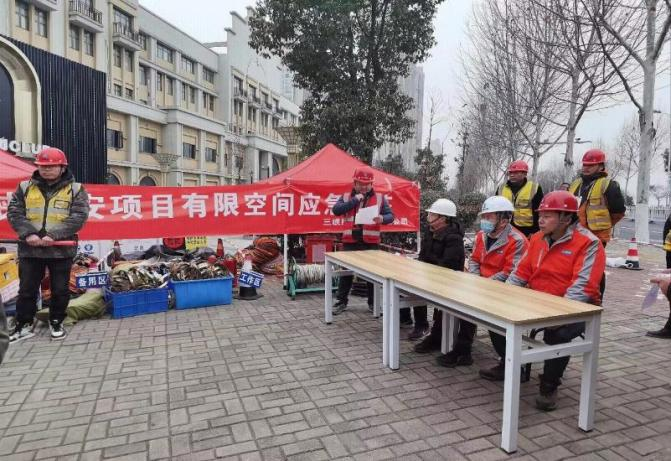 为防控重大施工安全风险,提升伤人事故扼制处置能力。2023年2月8日,三峡绿色发展有限公司六安市城区供排水一体化特许经营项目建设工程项目总承包项目部,在复工复产前,严格按六安二期水环境综合治理有限责任公司项目公司的复工管理思路,组织专业分包单位中铁五局六安项目部,在六安市淠河路开展了有限空间作业安全事故处置应急预案演练,以全面检验有限空间作业突发事故应急救援处置能力。项目公司参与应急演练,并对演练成效进行点评。