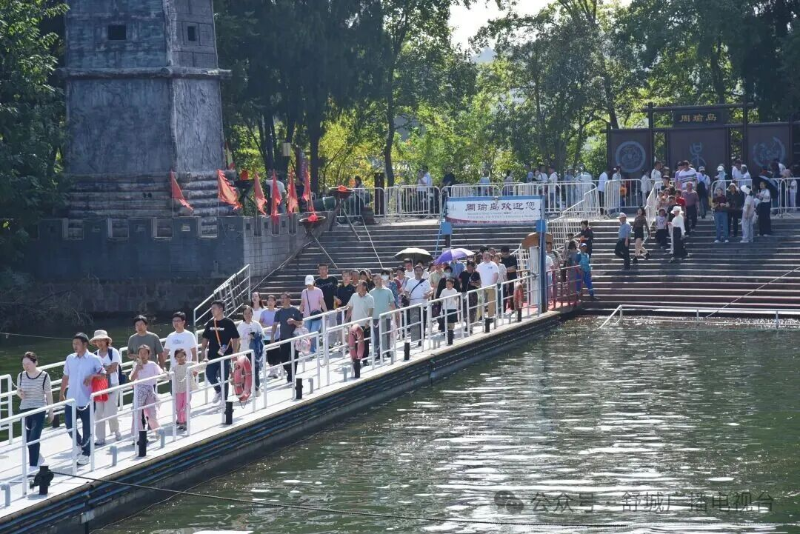 创意宣传,吸粉种草。此次双节,景区以“线上造势+线下造景”双轮驱动,全方位营造浓厚节庆氛围与高热度口碑。线上端,通过抖音、小红书、微信视频号等多平台发布宣传作品,介绍特色演艺项目、水上运动、游玩攻略等,更获人民网、凤凰网等权威媒体关注报道,吸引大量粉丝线上种草。线下端,从大门楼到核心区域全面布设节日元素,鲜红的国旗沿主干道整齐悬挂,灯笼与彩旗沿途交织点缀,更在坝前公园、观景台等地新增世界第一人工土坝、千里江山图写实地等网红打卡点,成为游客拍照留念的热门地。