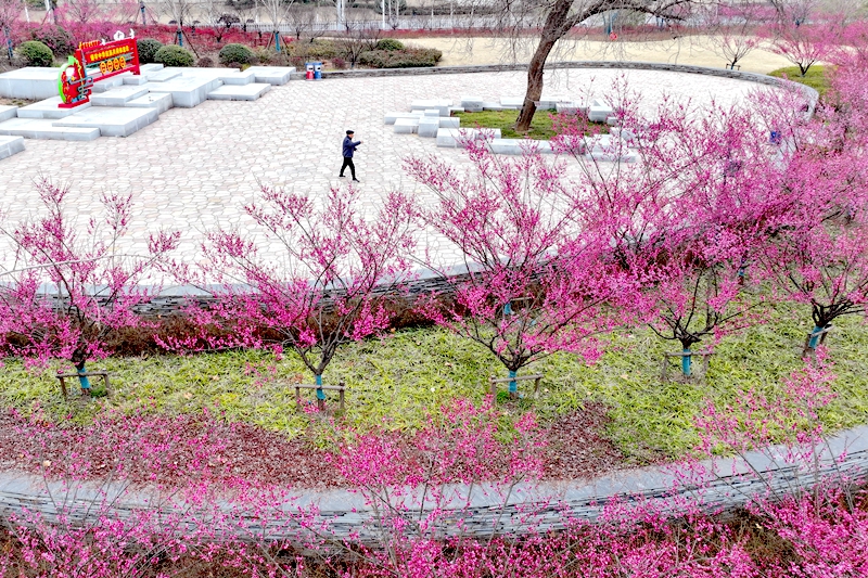 春风送暖,万物复苏。近日来,六安城区部分公园里多个品种的梅花正陆续绽放,星星点点的花朵汇成一道道亮丽的风景,恰似一幅幅生态画卷,吸引市民和游客纷纷走出家门,徜徉花海中,感受春日浪漫,乐享美好春光。图为2月20日,市民在六安城区赓续公园梅花树旁健身,尽享自然之美。