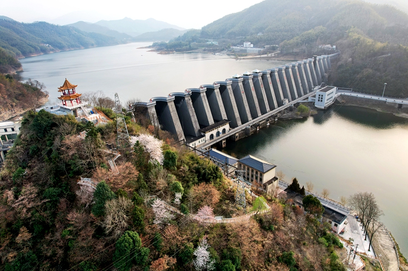 3月8日,大别山区霍山县佛子岭景区碧水荡漾,春景宜人。湖光山色中,被誉为“新中国第一坝”的佛子岭水库大坝,在春花的映衬下格外雄伟壮观。